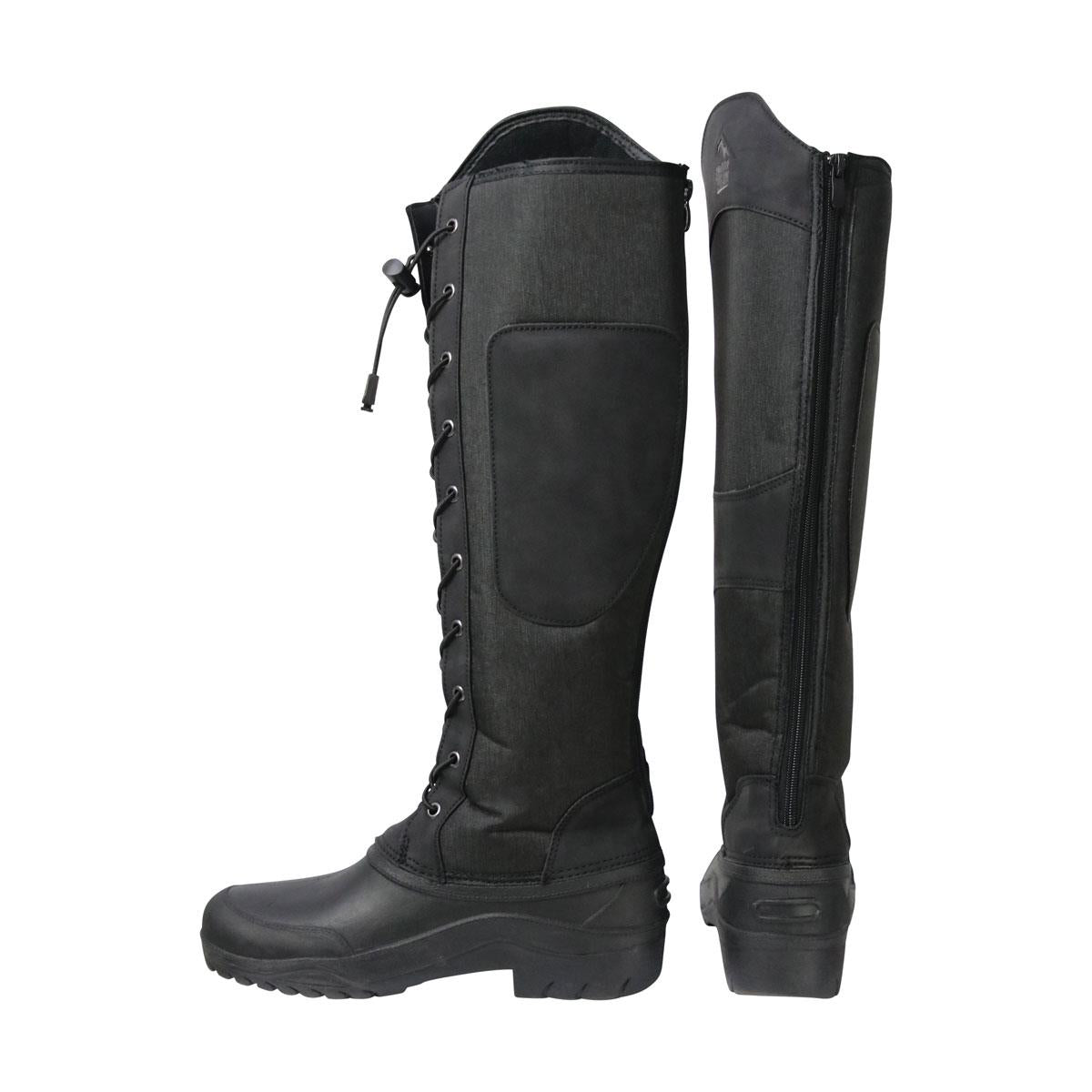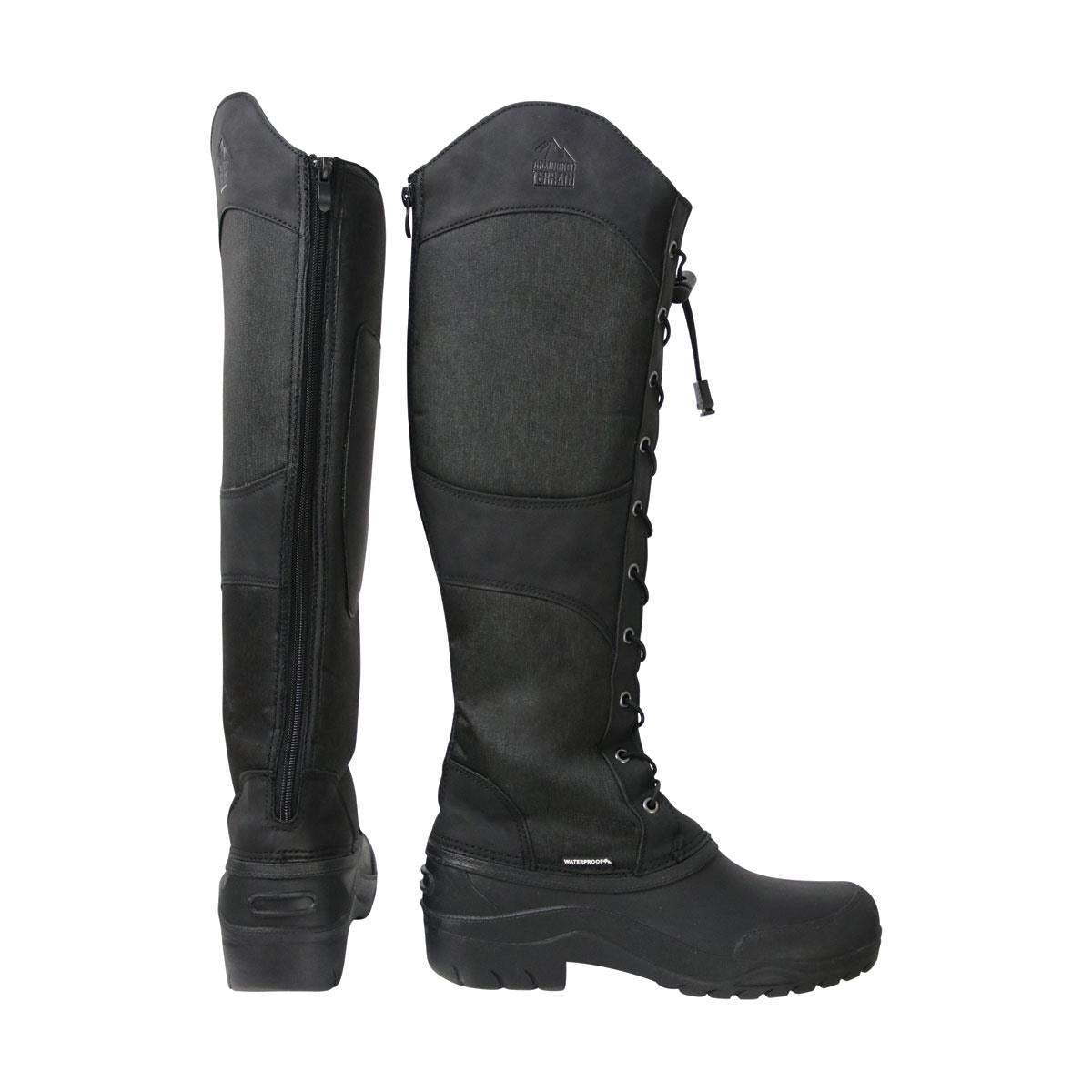 Keep your feet cosy with the new Mont Maudit Winter Boots! The waterproof foot will keep your feet dry whilst undertaking any activity, with a soft, breathable lining to keep feet feeling fresh and warm. With grey panels and black leather detailing up the leg for a fashionable finish and inner panel for added grip if worn in the saddle. The elasticated lace fronts allow for full adjustability for a variety of calf sizes, with a rear zip for ease of putting on. Finished with a robust and durable grip sole for use on any terrain.