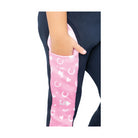 Perfect for any�pony�lover! These enchanting navy riding tights feature ombre pink�Pony�Fantasy�print panels on the legs for a stylish and coordinated look. Made from a technical material that wicks moisture away and offers a four way stretch, these tights ensure a snug fit for days in and out the saddle and optimise comfort. The silicone horseshoe and heart knee patches in subtle navy not only look good but help with grip when riding, and feature one pink love heart for a striking look. Featuring a handy phone pocket for possessions, Little Rider logo and elasticated waistband for ease of fit and comfort. Match with the rest of the collection.�