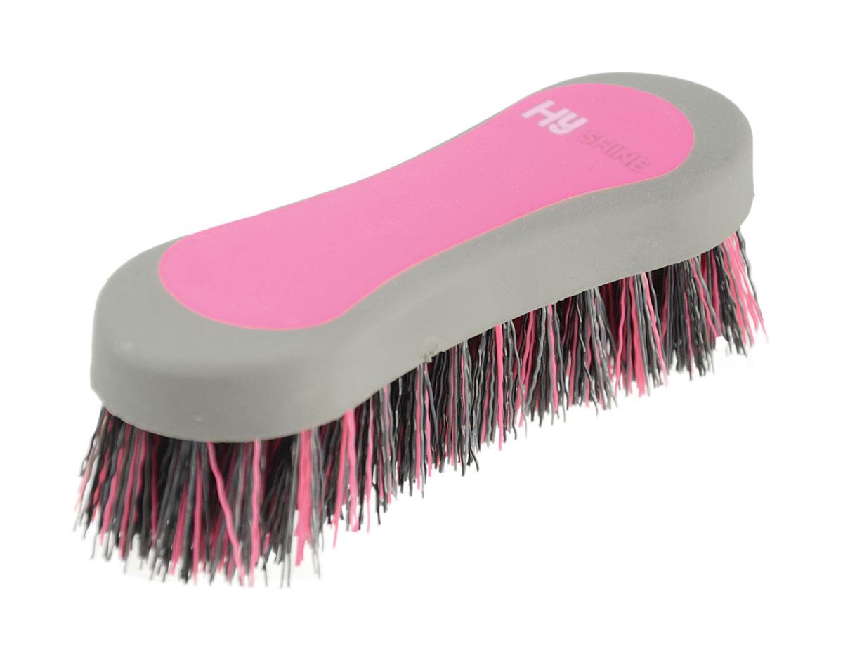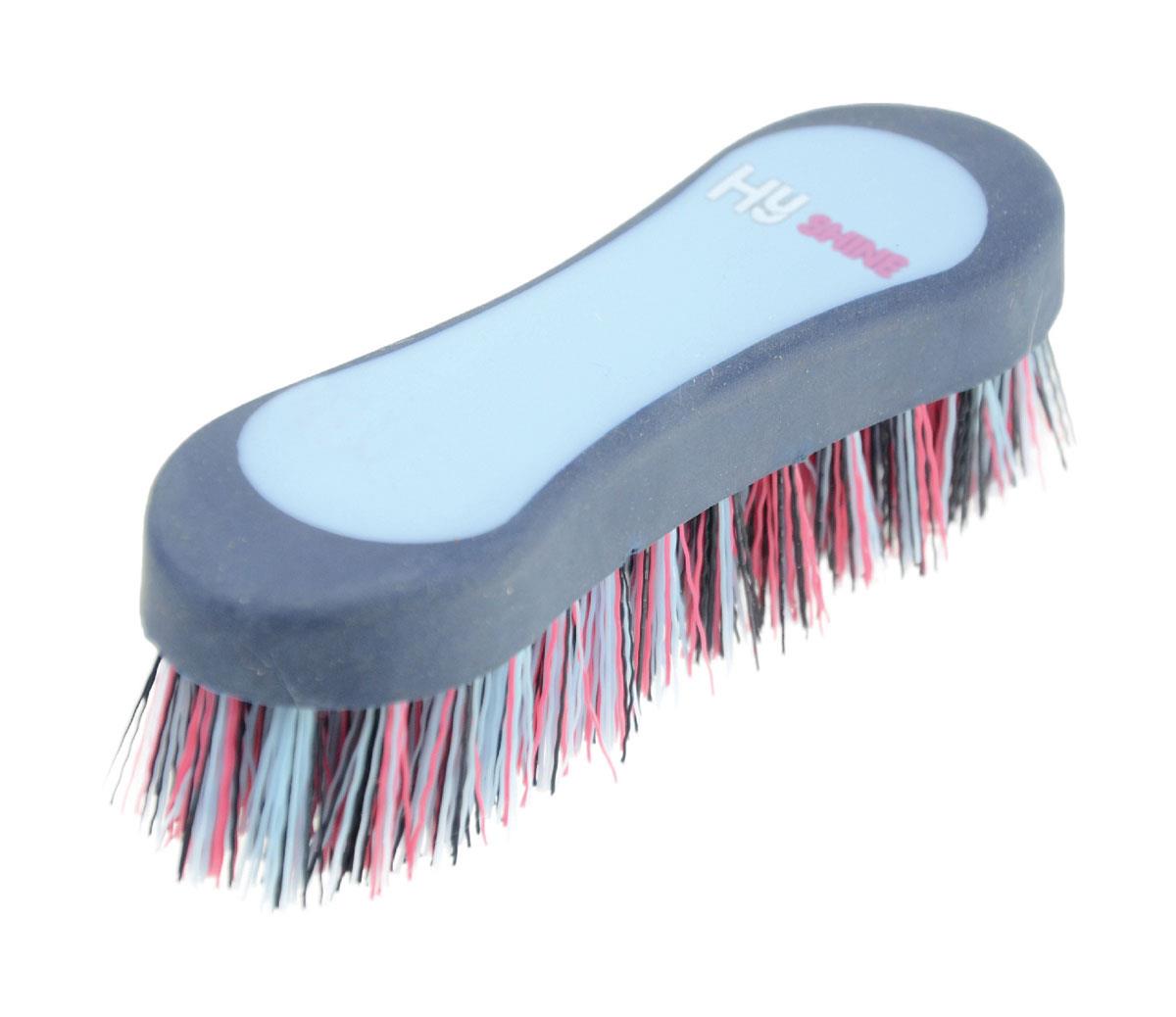 Two tone, soft touch hoof brush with stiff PP bristles.
