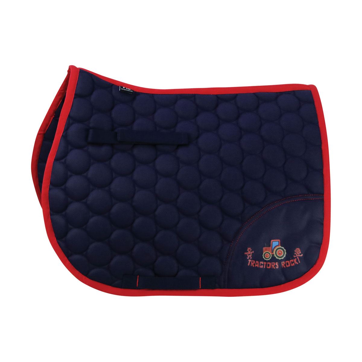 This adorable saddle pad features the �Tractors Rock� design and circle shaped quilting which complements the contrasting trim and stitching. The girth strap and touch tape fastenings on either side keep the pad securely in place. A matching fly veil is also available!