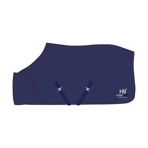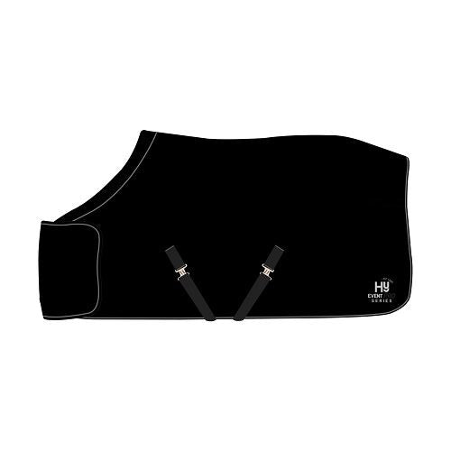 this is A smart soft touch fleece rug ideal for shows, travelling or for daily use after exercise. Perfect for preventing chill and helping sweat absorption, this rug also comes with a rolled cushioned neckline that prevents restriction and alleviates pressure over the wither. Comes with cross surcingles and a single fastening front with a strong touch tape closure on top. Finished with cord binding detail and the Hy Event Pro Series embroidery. Machine washable. Part of the Hy Event Pro Series collection.