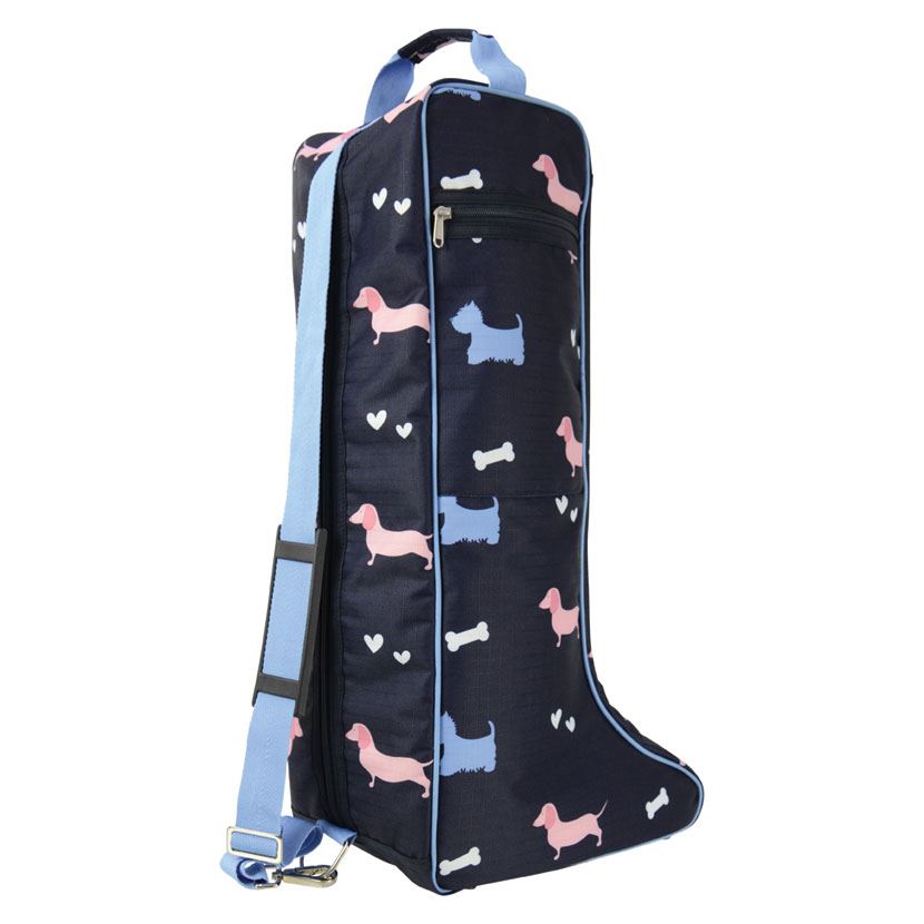 Ripstop and waterproof, this stylish dog print boot bag will protect your boots and ensure they stay dry and clean. Featuring a double zip fastening, zip side pocket, grab handle and over the shoulder carry strap, this bag is a handy way to carry your long boots.