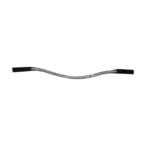This is A beautifully crafted curved diamante brow band made from the finest quality leather. With 2 rows of diamantes makes this a very stylish look for that winning performance