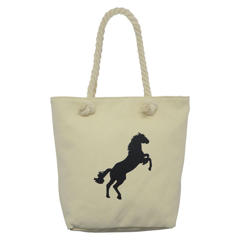 These strong canvas bags are perfect for shopping, carry brushes, travelling, going to work� just about anything! The zip top ensures your belongings are kept safe and secure. Thick rope handles add style and comfort to this must-have horse design bag!