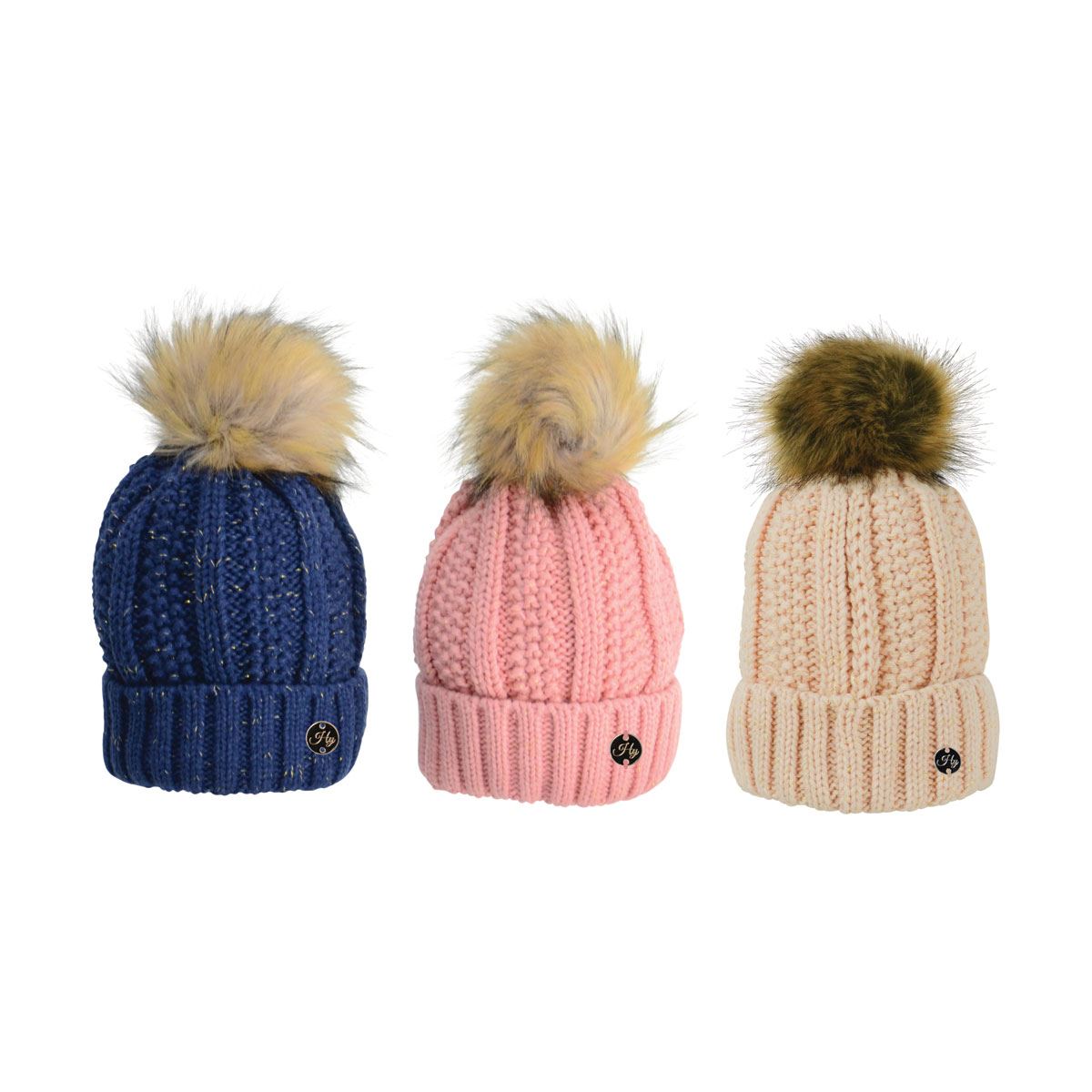 This cosy knitted bobble hat is perfect for colder weather. The stylish outer detailing with metallic thread is paired with a soft fleece lining to create a comfortable and warm feel. The detachable bobble allows the hat to be washed.