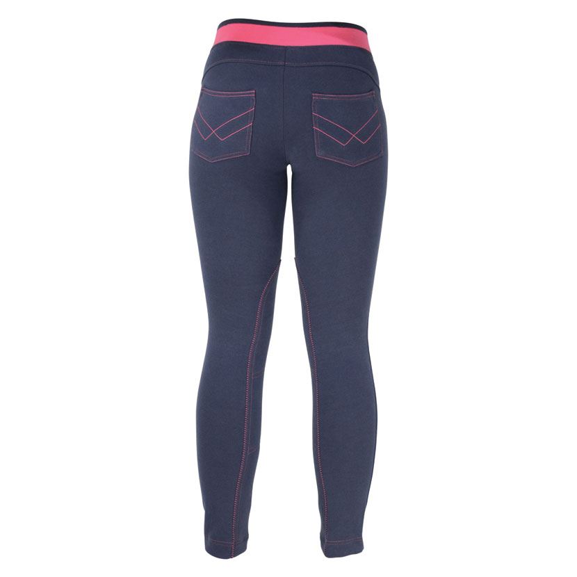 These trendy jodhpurs feature an elasticated waistband, designed for maximum comfort whilst riding. With reinforced fabric from the knee down and two handy front zip pockets.