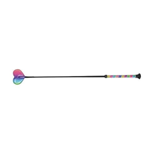 This is a fun whip that will add colour to the darkest day! With glittery rainbow colours flowing into one another on the heart shaped end and the matching handle is broken up by a silver glitter wrap. Perfect for children!