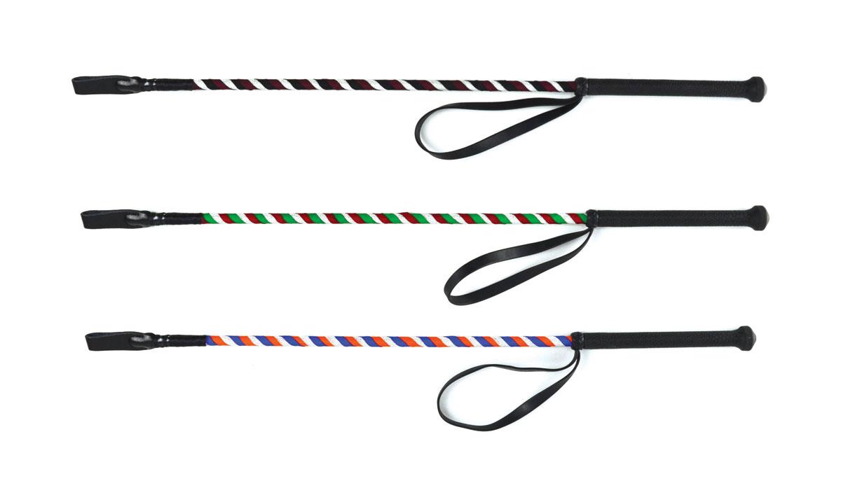 Braided riding whip, spiraled with colour varieties. Great for everyday use!