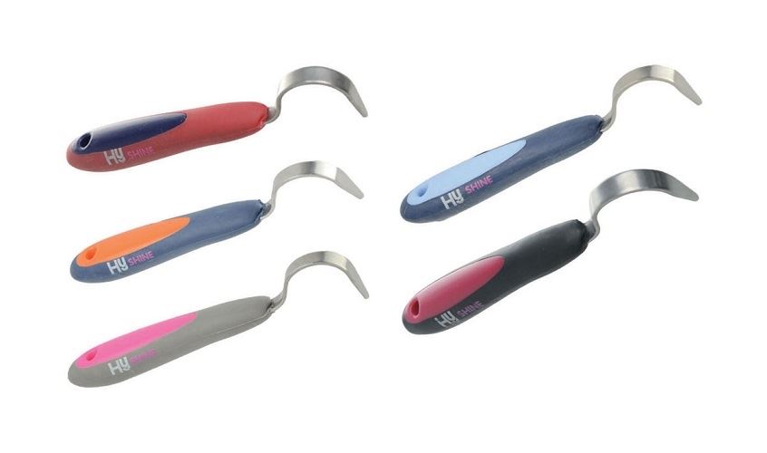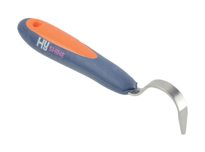 This has Two tone colouring, soft touch stainless steel hoof pick.