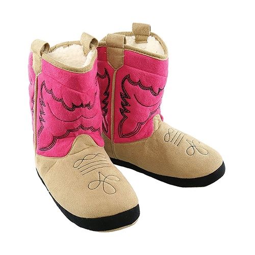 You know When it's time to round up some comfort, our new Cowboy Booties are the getup to get down in! The faux suede exterior has a trendy western pattern just perfect for cowpokes, and the snug, fleece lined interior pampers the tired tenderfoot. With soles so soft for walkin' (cause that's what you'll do), these slippers come in a range of sizes for every buckaroo - infant through to adult! Yep, if you're fixin' for foot fashion, our Cowboy Booties are the craze of the corral!