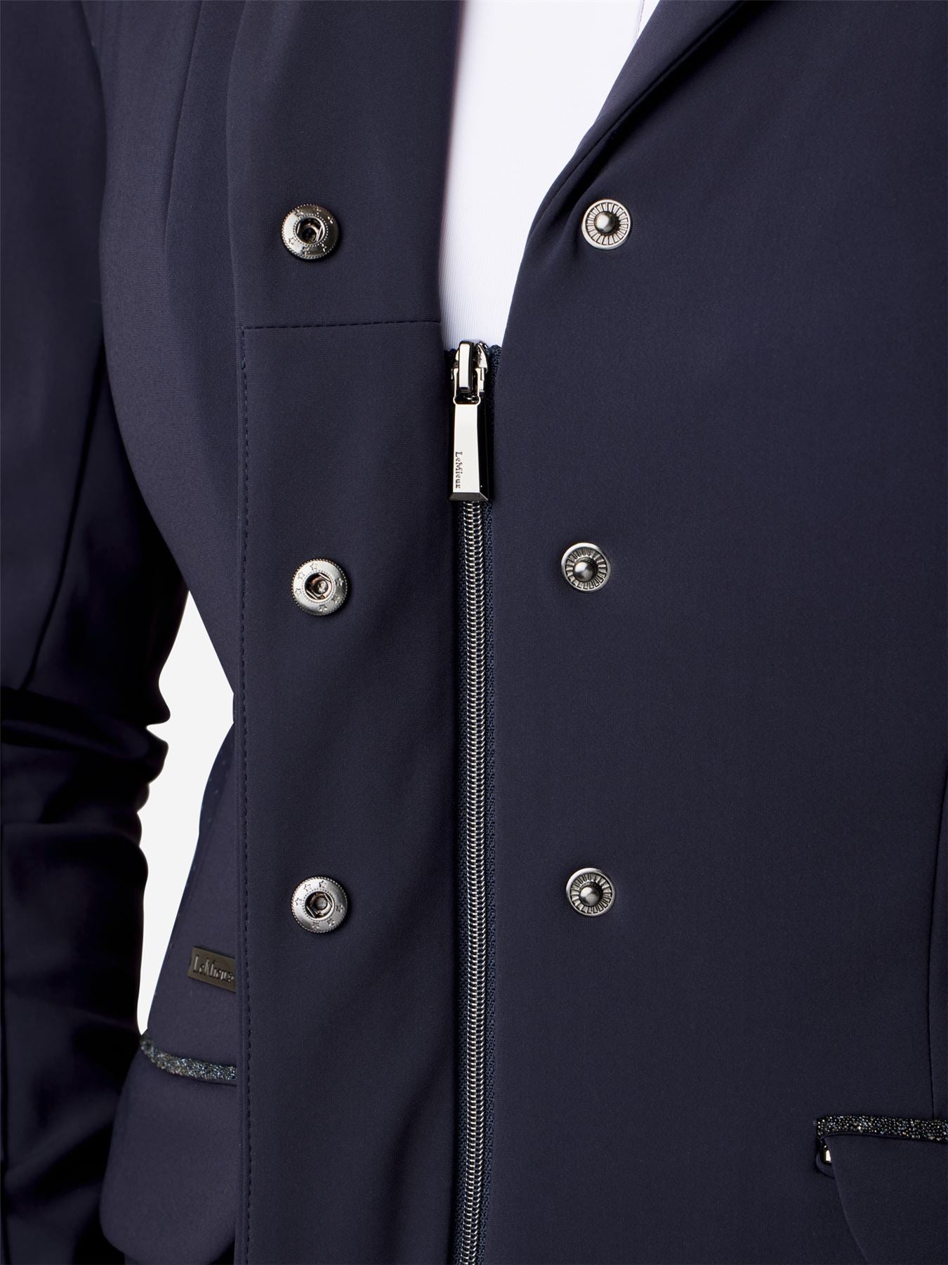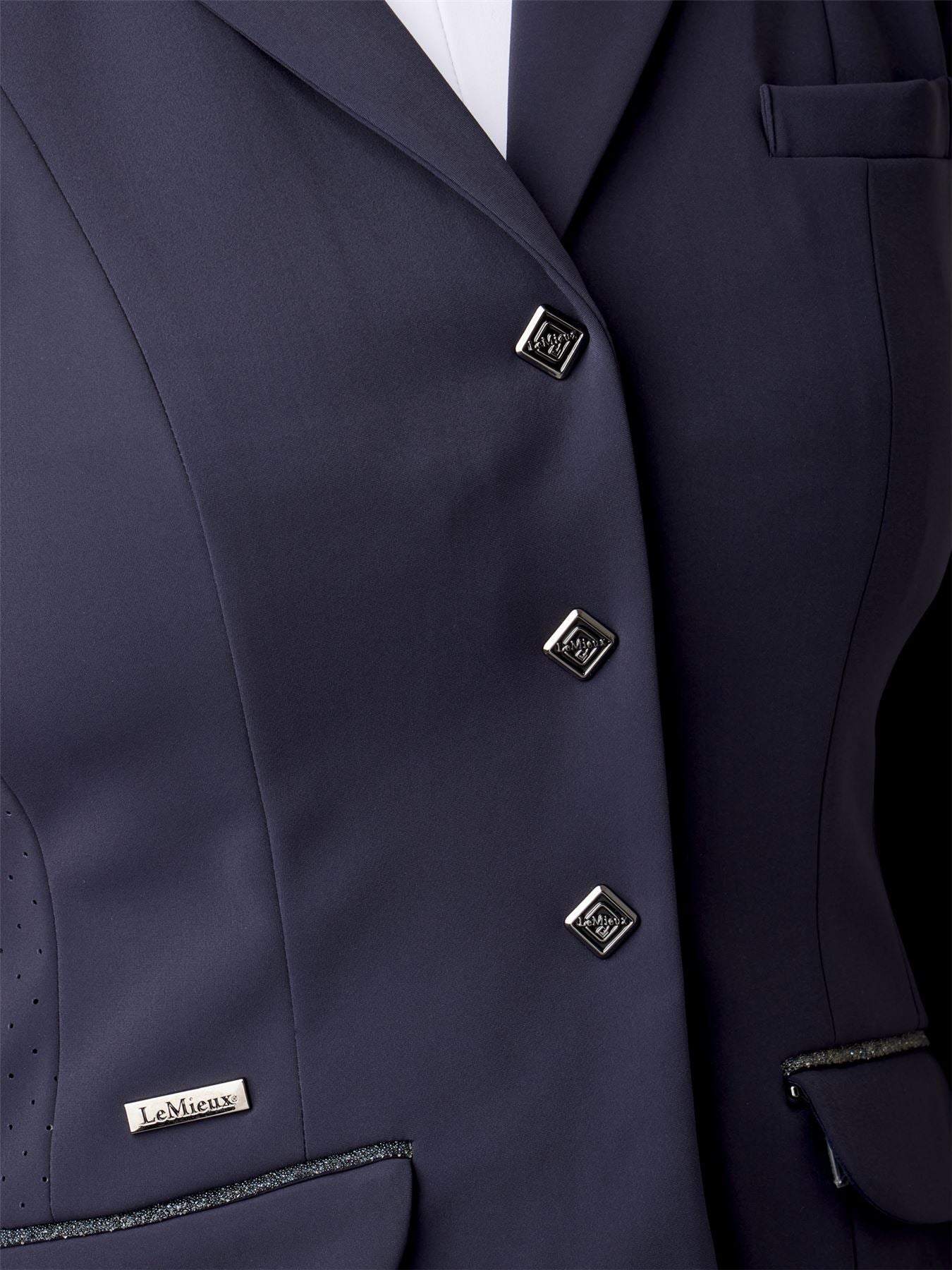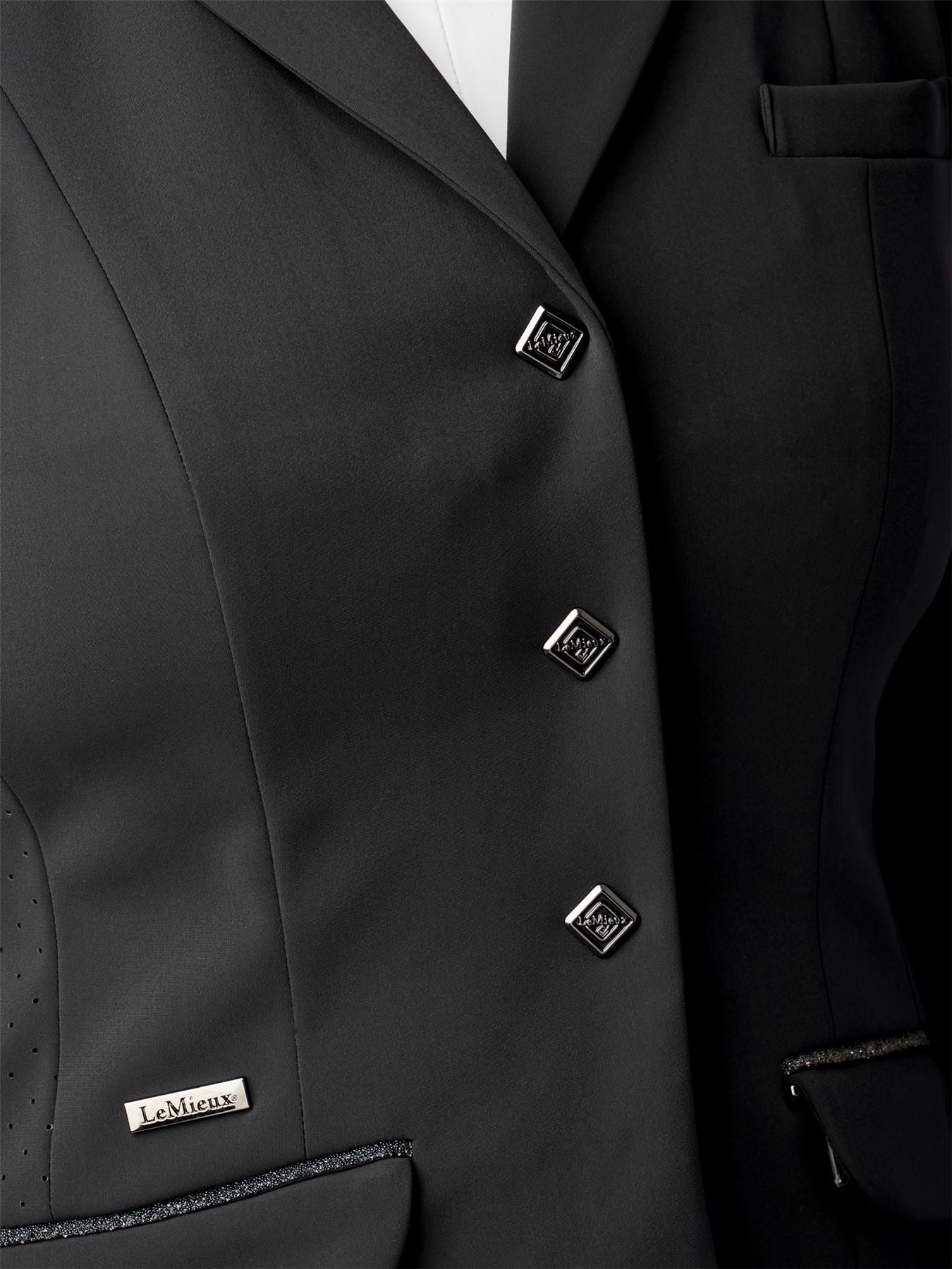 The stunning new Dynamique Show Jacket has been designed with your competition performance in mind. Vented side panels and sports mesh lining to the front provide the ultimate breathability, combined with superior stretch and recovery so that the rider is unrestricted and free to move. A subtle beaded trims on pocket edges and back belt panel add a touch of luxury sparkle and creates a flattering silhouette and stylish appearance. Fastened with a front zip and custom LeMieux press stud for stunning practicality, this Show Jacket is a must-have for all competition riders.