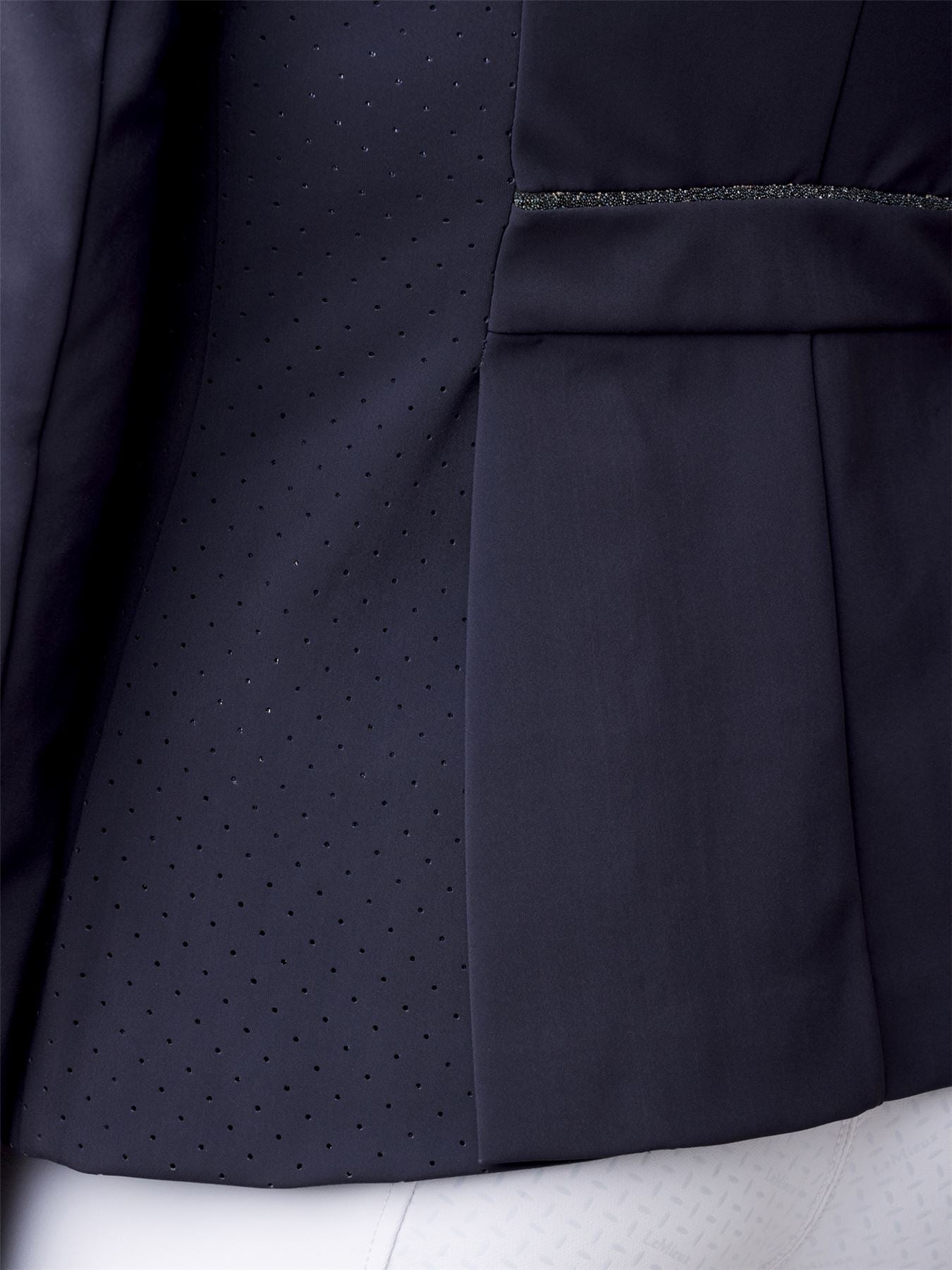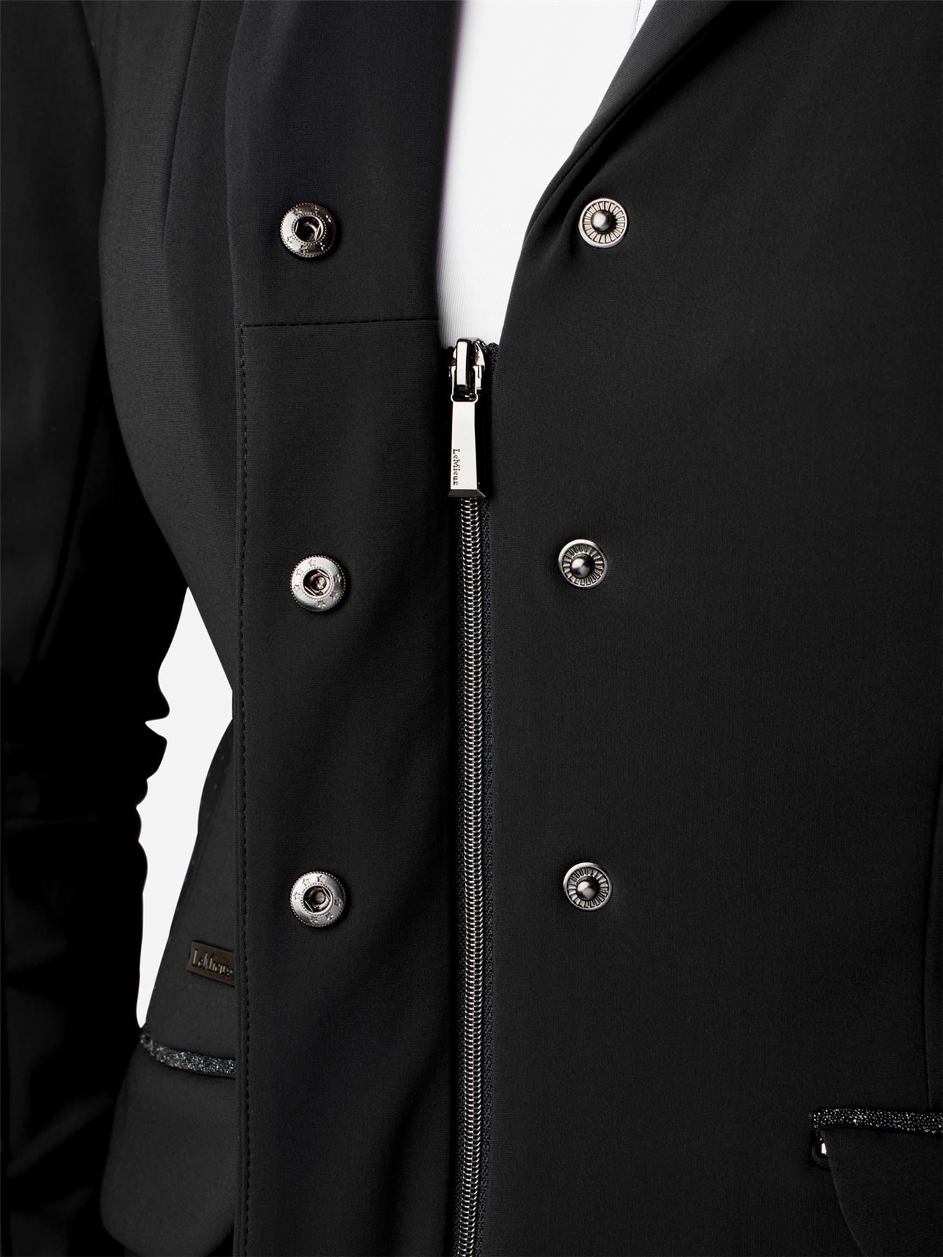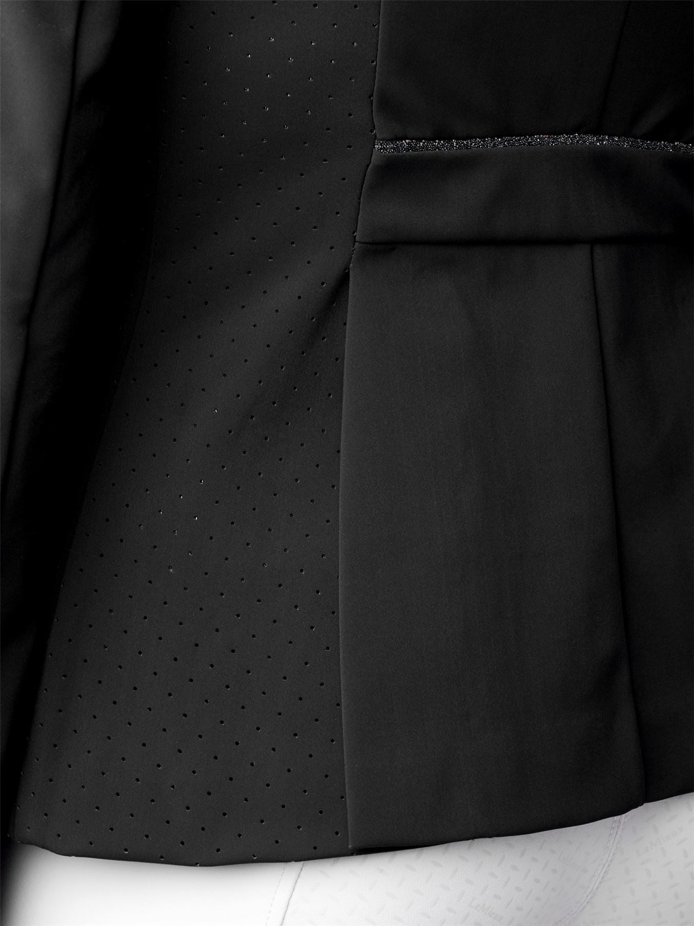 The stunning new Dynamique Show Jacket has been designed with your competition performance in mind. Vented side panels and sports mesh lining to the front provide the ultimate breathability, combined with superior stretch and recovery so that the rider is unrestricted and free to move. A subtle beaded trims on pocket edges and back belt panel add a touch of luxury sparkle and creates a flattering silhouette and stylish appearance. Fastened with a front zip and custom LeMieux press stud for stunning practicality, this Show Jacket is a must-have for all competition riders.