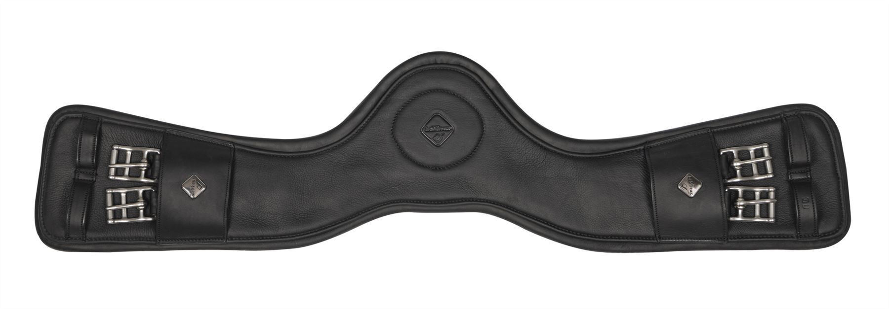 Anatomic high performance girth that maximises comfort Gel impregnated pockets on leading edge of girth allow muscle to move freely without restriction & sensation of blocking Combination of dynamic gel & ultra soft oiled leather absorbs and spreads pressure evenly across the surface area of the girth Contoured shape allows maximum freedom & space behind the elbow Scalloped shaped ends even pressure under the buckles, which are splayed and set at a slight angle Allows less restricted movement of the front legs and can improve stride length Enhances saddle stability and eliminates discomfort & rubbing A minute degree of elestication is built into each buckle attachment - just enough for flexibility without effecting saddle fit or girth tension