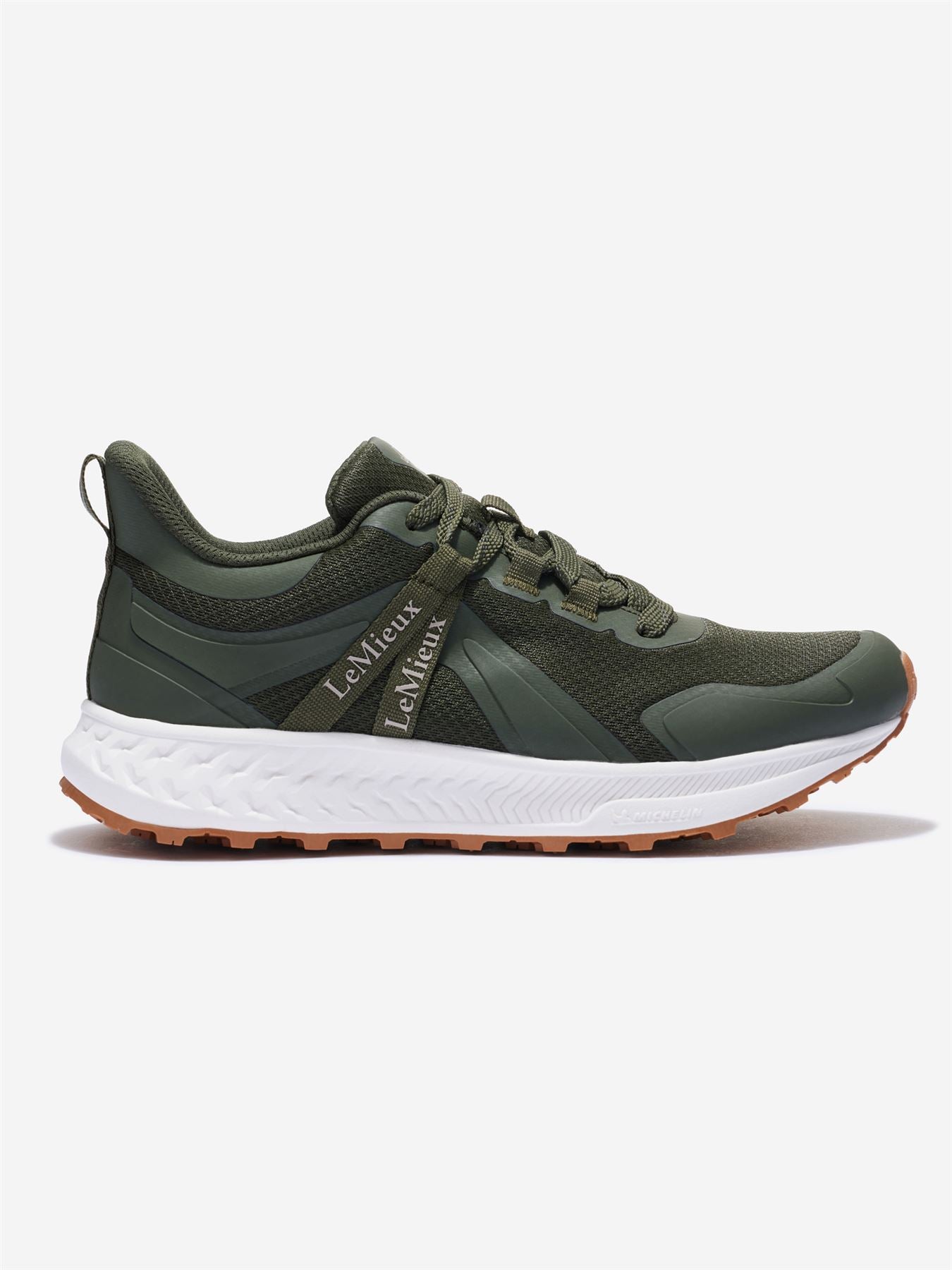 Introducing the new Trax Trainer by LeMieux. Our first all weather, all terrain waterproof trainer, designed for the most discerning of equestrians who want it all � comfort, style, durability, and performance.The ultimate trainer for weekend walks, yard work, shows, yet equally comfort and stylish for everyday casual wear.The exclusive Michelin rubber sole's unique tread pattern provides unmatched stability on slippery surfaces, ensuring you stay safe on your adventures, whilst also reducing the build-up of mud and gravel in the sole to further enhance comfort.Ergonomically moulded insoles provide excellent support for all day comfort, whilst the EVA foam midsole offers exceptional shock absorbency. A fully waterproof lining and wipe clean water repellent upper fabric, keeps your feet dry all day long regardless of the conditions.And exceptional durability is boosted thanks to a TPU overlay and rubberised laces, whilst reflective tape details catch the eye in low-light conditions.