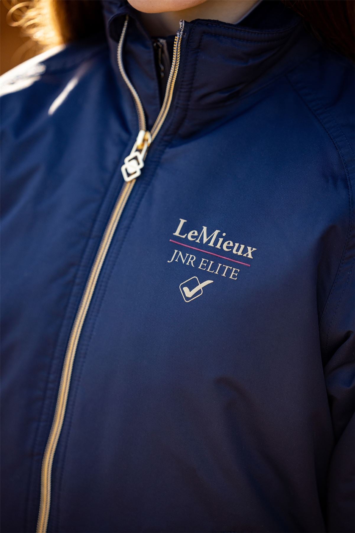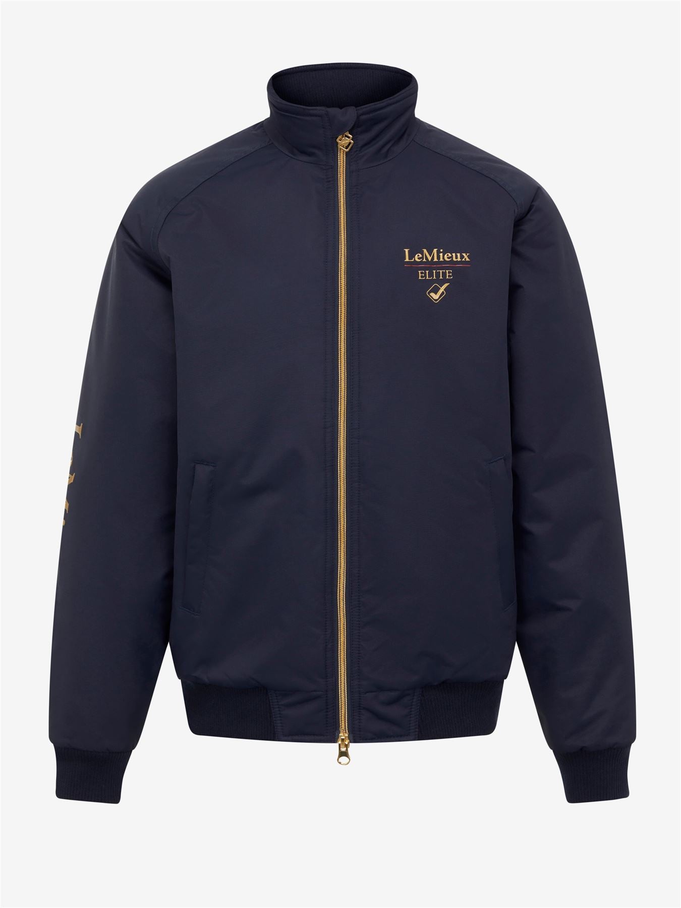 Introducing the Young Rider version of our Ladies Elite Crew Jacket. Perfect for on or off the yard, the Young Rider Elite Team Jacket is waterproof, wind-resistant and features taped seams to stop the rain from getting in. Zipped underarm vents keep active riders cool, while the double collar provides extra protection from the elements. With zipped pockets and gently elasticated hem and cuffs, it's designed for practicality and built for comfort. Gold metalwork and badge detailing completes the look, adding that signature LeMieux touch.