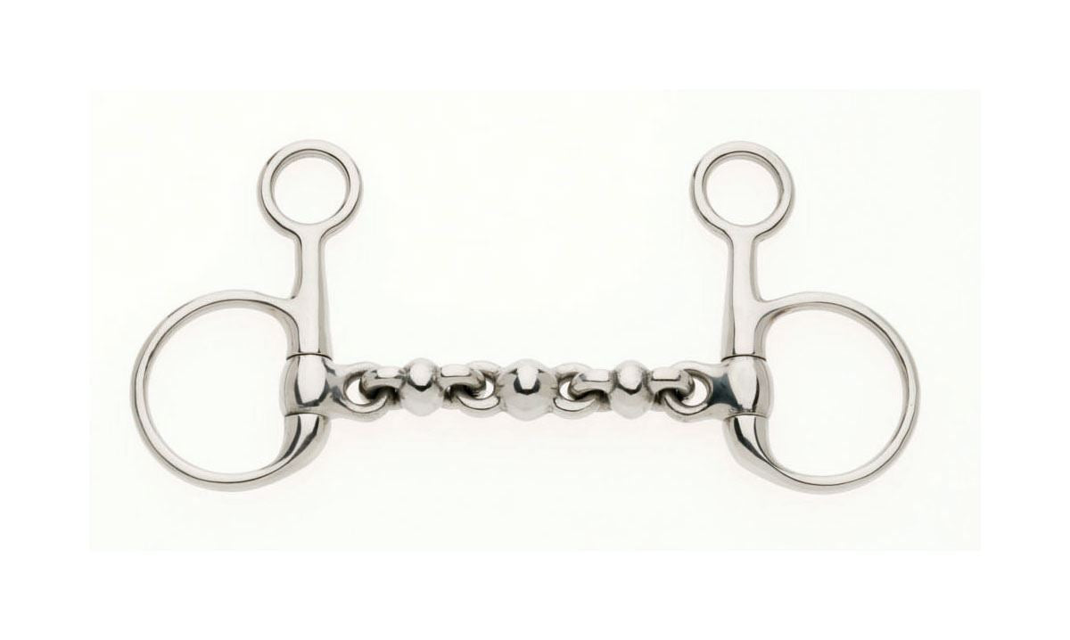 Hanging cheek applies a little poll pressure when the rein aid is applied and the waterford links help to stop horses from leaning on the bit.