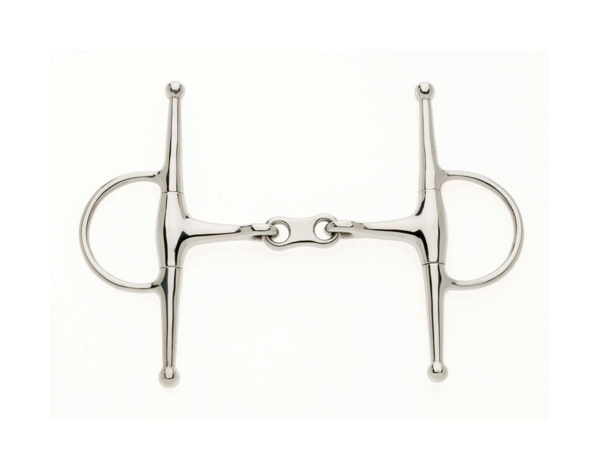 Full cheek applies a tiny bit of poll pressure when the rein aid is applied, and prevents the bit from being dragged through the mouth. French link lays across the horses tongue and bars, eliminating the nutcracker action. Can be used in dressage competitions. Helps steering with green horses.