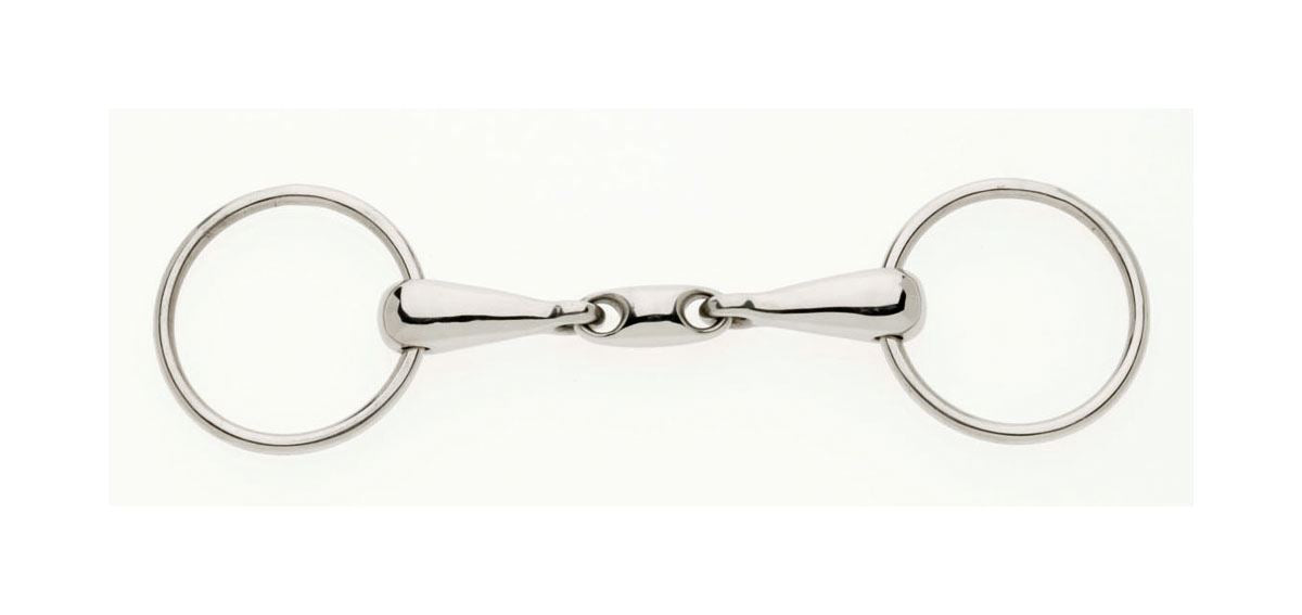 Double jointed bit similar to a french link but with a smooth lozenge in the middle for a slightly more positive action on the tongue. Can be used in dressage competitions.
