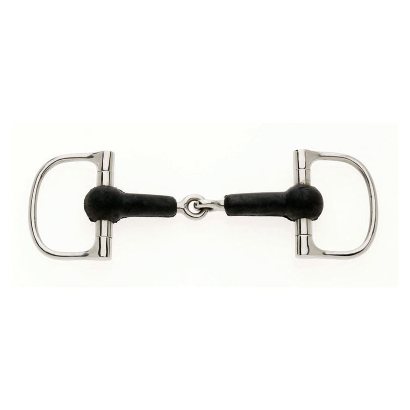 The larger D rings on this bit help prevent it being pulled through the horses mouth. The rubber gives a softer, warmer feel to the bit.