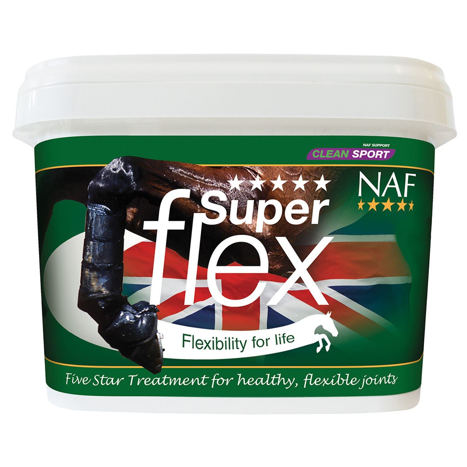 Shop now at Just Horse Riders for the high-quality NAF Five Star Superflex. This product is expertly formulated by NAF with a scientifically balanced ratio of easily absorbed glucosamine and chondroitin. It features top-tier MSM and is enriched with an effective anti-oxidant formula. This unique blend is designed to address the build-up of excess toxins around the joint, promoting better joint health for your equine companion.
