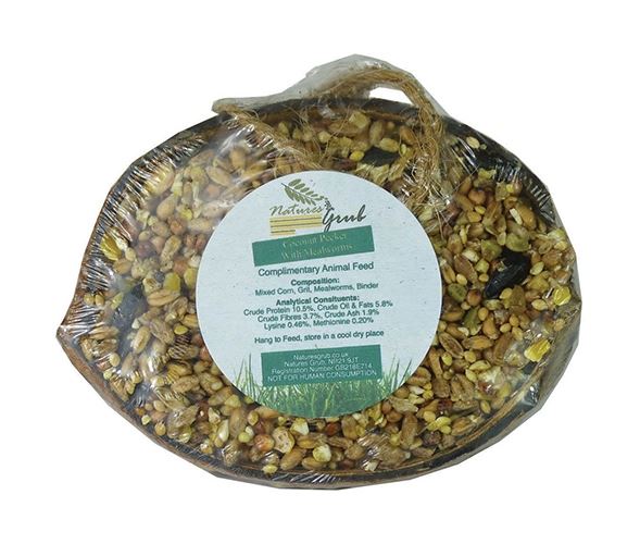 The Natures Grub Coconut Pecker with Mealworms is a great hanging, pecking treat for wild birds. This pecker comes with its own hanging rope for ease of use.
