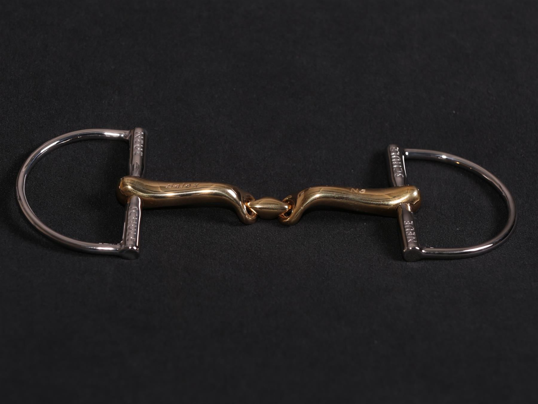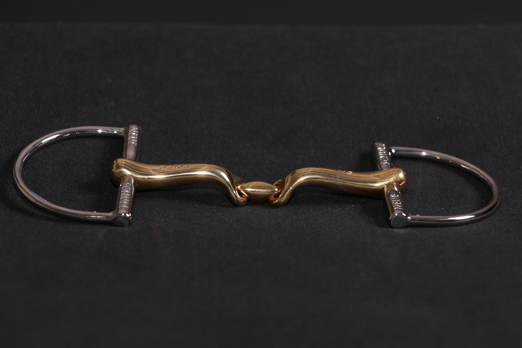 The Verbindend greatly clarifies and emphasises the signals through the rein. Promoting self carriage and throughness, a true outline and freedom through the shoulder can be developed with this bit. The Verbindend has consistently helped eradicate tongue evasions, encouraging the horse to soften and relax through the jaw. The cleverly curved mouthpiece can also enhance the development of the bend for lateral work and smaller circles. The D-ring cheek-piece is excellent for added directional control and exceptionally good for tight turns during faster work. It is also safer as it should not pull through the mouth in a panic situation. This dressage legal snaffle is not severe, so if you need help with directional control and extra lift, this may meet your needs.