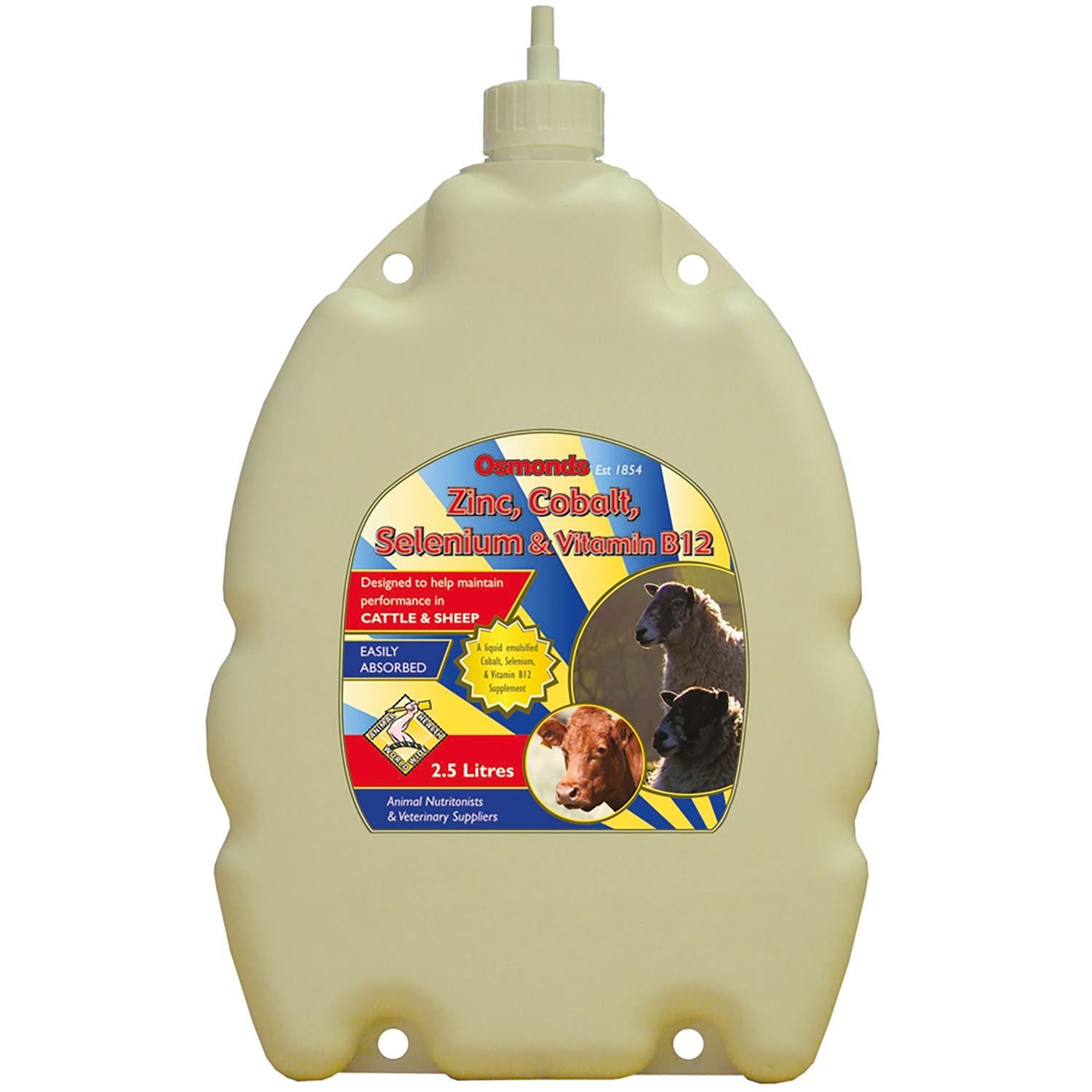 Emulsified liquid cobalt, selenium and vitamin B12 supplement on an energy-sourced base.