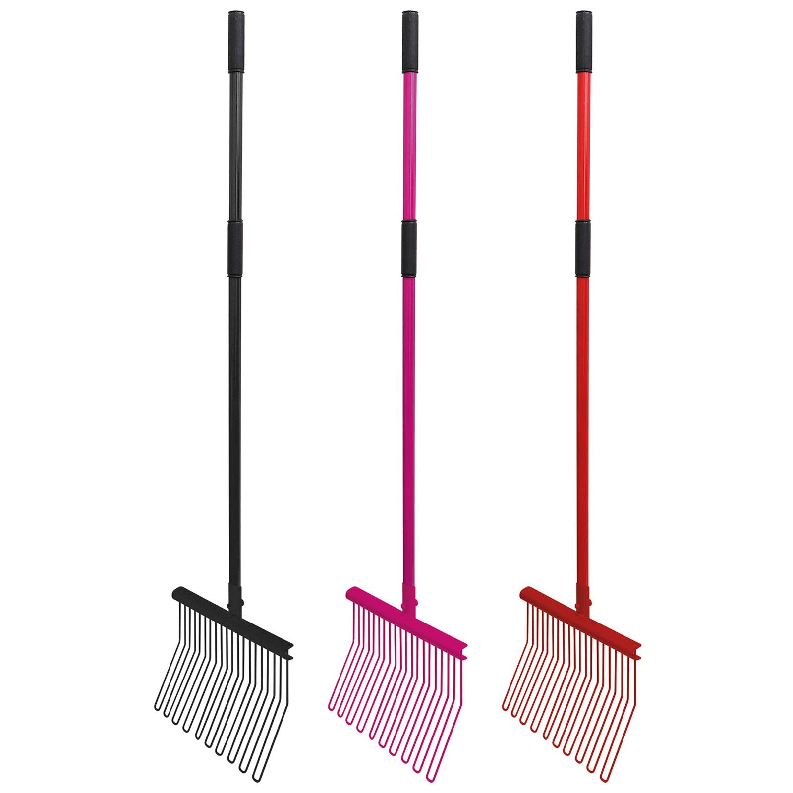 Remove manure and wet bedding from the stable. Aluminium handle. Rounded tines will not damage matting. Perfect for: Wood pellets, wood chip, wood shavings, straw, paper bedding.