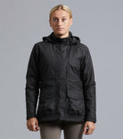 Waterproof and breathable Teflon coated 100g Polyfill Fully adjustable detachable hood Designed for optimum comfort Generously cut sleeves YKK two-way front zip Two external deep pockets Snug-fit fleece lined collar Quilted lining 'Premier Equine' branding 5000mm waterproof rating