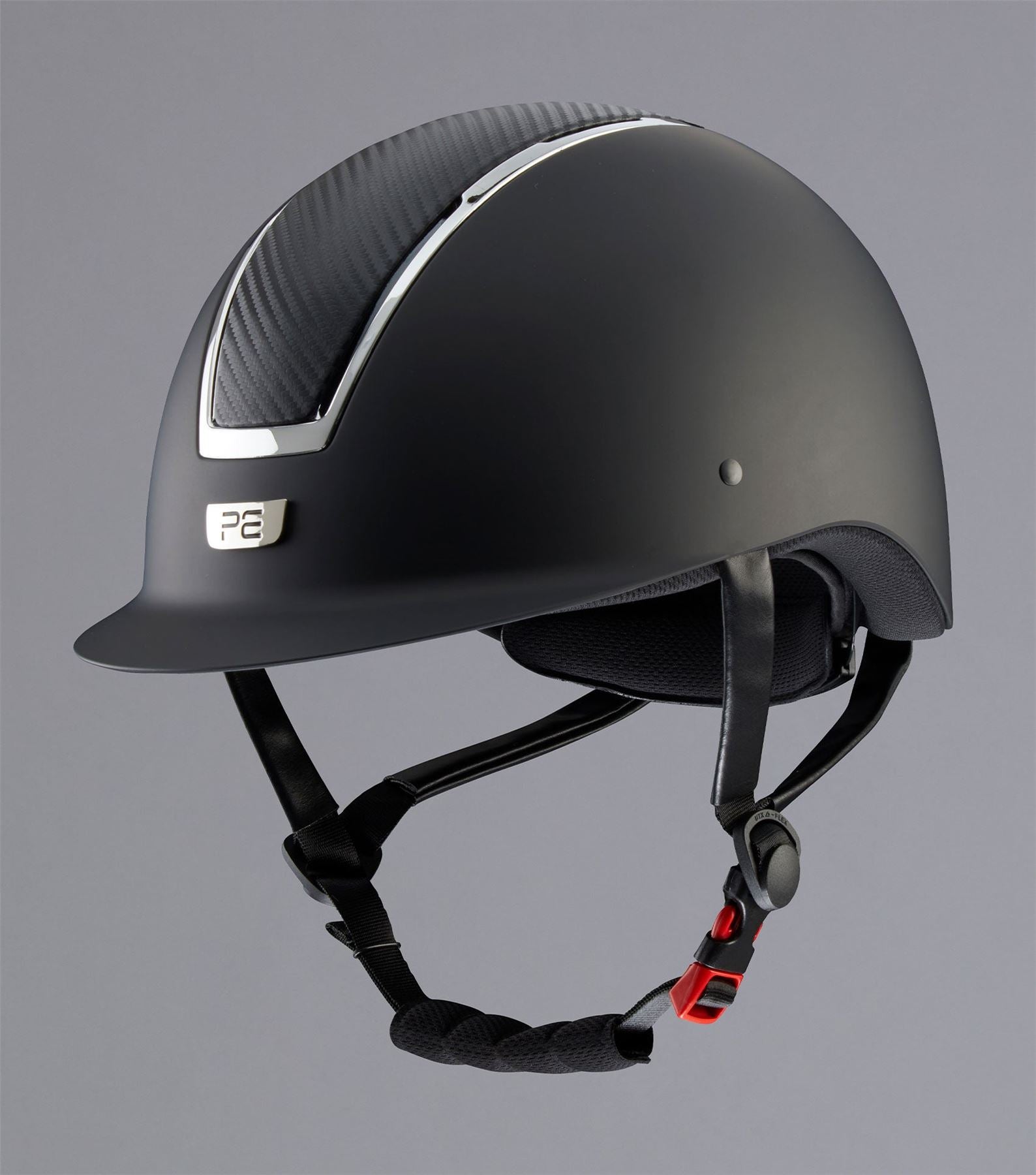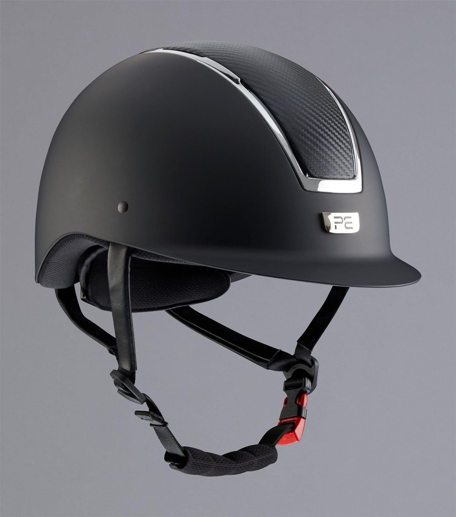 Kitemarked to PAS015:2011 and VG1 01-040 2014-12 Low profile peaked helmet with lightweight injection moulded ABS shell Central carbon fibre finish panel High gloss gunmetal trims Ventilation ducts for maximum breathability Matte finish Removeable comfort padded lining in antibacterial, moisture wicking material for superior comfort Four-point fully adjustable eco-leather & webbing harness for perfect stability Quick release buckle Dial fit system for precision fitting.