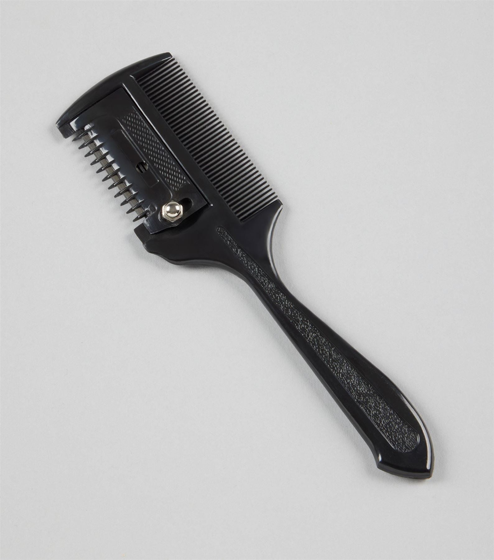 This tool provides a safe way of removing excess hair. It features removable blades, a fine tooth comb one side and a blade with safety teeth.