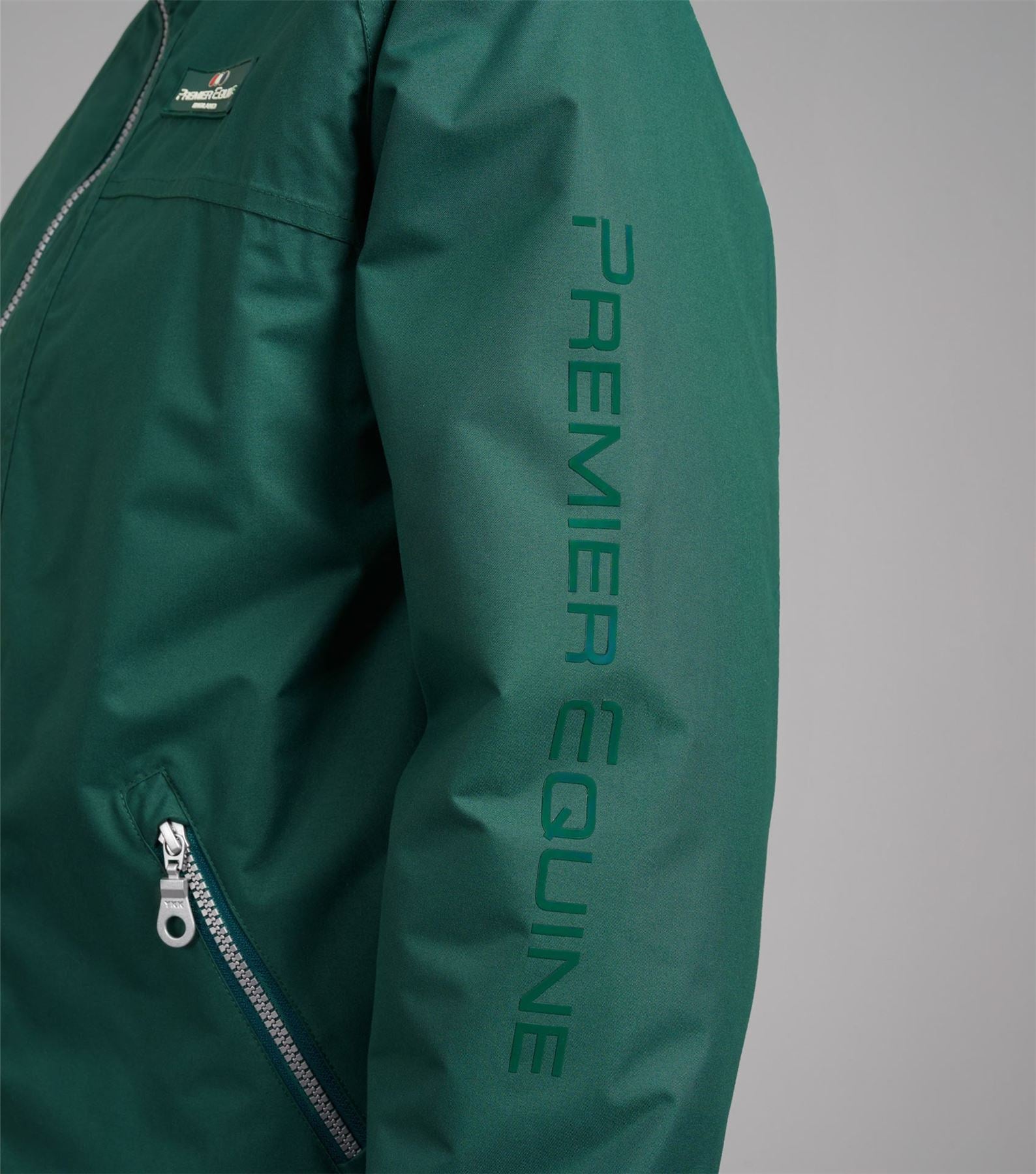 Waterproof and breathable Teflon coated 100g fill Designed for optimum comfort Added length prevents back from riding up Elasticated waist Generously cut sleeves Internal zip allows access for embroidery YKK front zip Two external pockets One internal pocket Snug-fit fleece lined collar Quilted lining 'Premier Equine' branding 5000mm standard waterproof and breathability rating