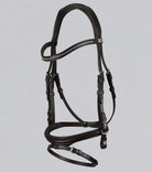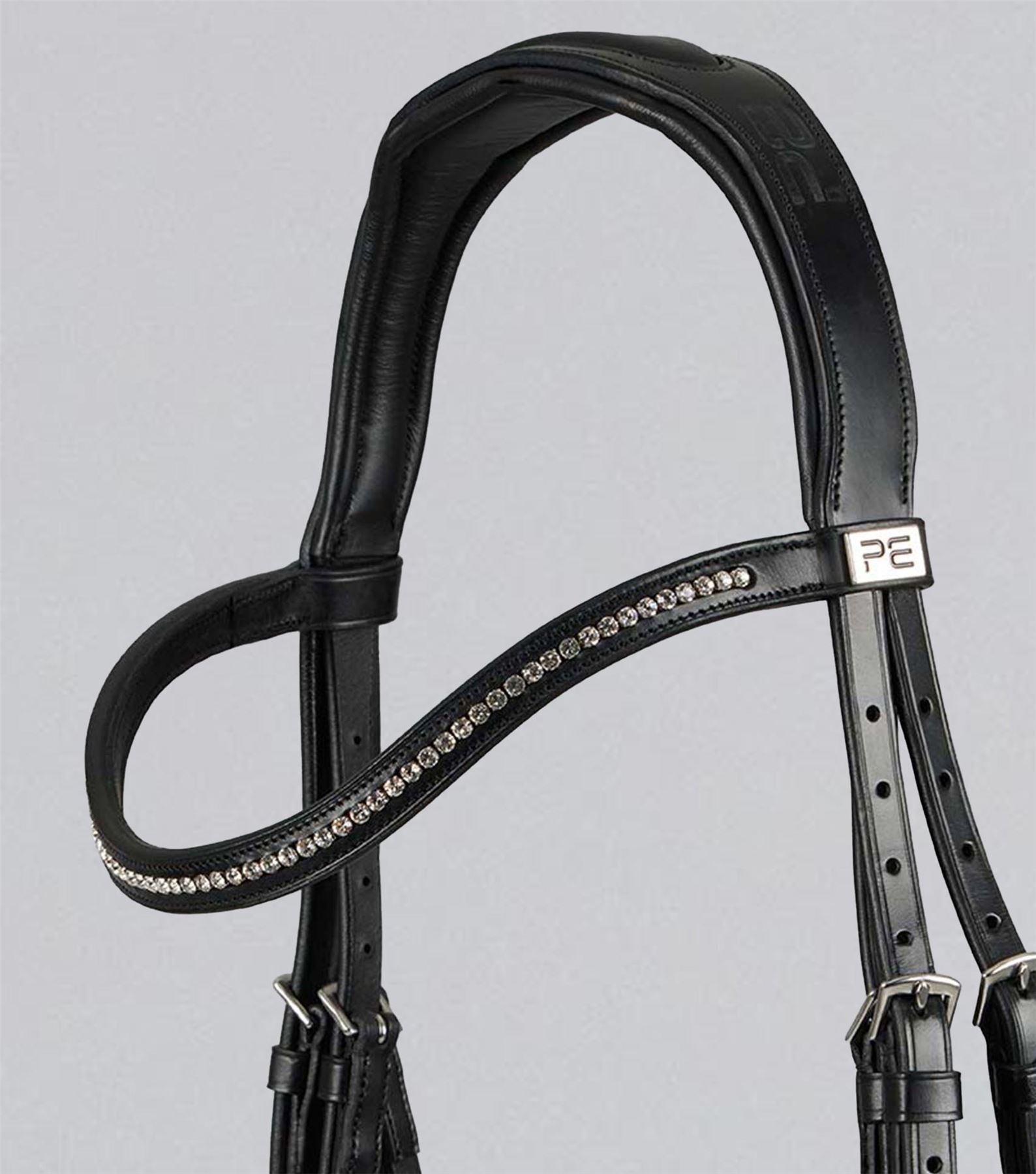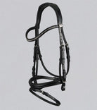 The Rivere Anatomical Bridle is a high-quality of leatherwear designed to provide comfort and performance for the horse. It is made from top-grade Italian leather and features an anatomically shaped headpiece and noseband to ensure even pressure distribution and minimise pressure points. The padded crown and browband offer extra comfort for the horse, while the elegant yet functional design makes it suitable for both training and competition. Crafted from top-grade Italian leather, the bridle ensures durability and a touch of luxury in its construction. This premium material is known for its supple feel and exquisite quality, making it an ideal choice for riders who seek style and performance. The Rivere Snaffle Bridle also includes a flash noseband designed to help keep the horse�s mouth closed and encourage acceptance of the bit, particularly beneficial for horses that may require additional encouragement to soften and relax their jaw while maintaining a connection with the bit. Equipped with a soft pad that sits over the poll, the padded headpiece aims to provide extra comfort and reduce pressure on the sensitive poll area. This helps promote relaxation and overall comfort for the horse by distributing pressure more evenly, minimising the risk of discomfort or irritation during extended wear. Available in a timeless black colour, the Rivere Snaffle Bridle adds a touch of elegance to its overall design. The classic black hue complements a wide range of equestrian styles and is a popular choice for both everyday riding and competitions. To add a touch of glamour and sophistication to the design, the bridle is adorned with a stunning diamant� browband. The shimmering diamant� detail not only brings an element of elegance to the bridle but also helps the horse stand out, making it an ideal choice for riders who appreciate added flair. In addition, the bridle features a chrome PE badge, adding a touch of sophistication and elegance to the overall design. This subtle yet eye-catching embellishment enhances the bridle�s aesthetic appeal and signifies the brand�s commitment to quality and attention to detail.
