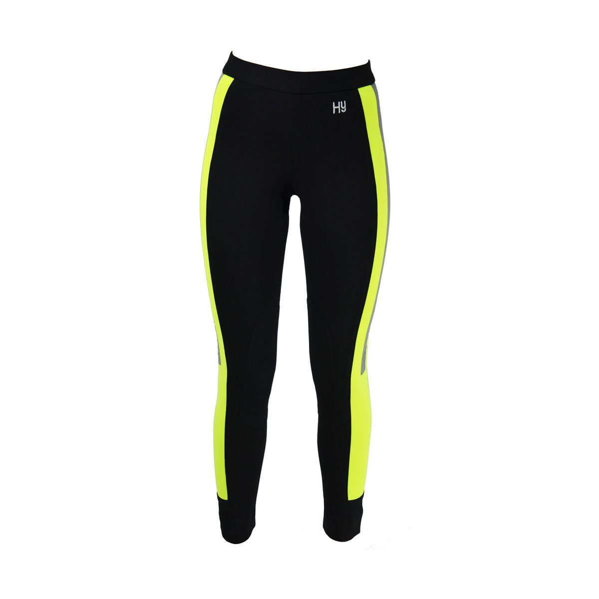 Look smart, feel comfortable and stay safe with the HyVIZ Reflector Ladies Jodhpurs. These flattering jodhpurs have been designed with a fluorescent panel and reflective silver strip down the leg to optimise visibility in low-light conditions. Made with 95% cotton and 5% Spandex, these pull-on style jodhpurs are both stretchy and comfortable and come with an elasticated waistband. Available in either yellow and black or pink and black, they are finished with two useful back pockets topstitched in silver, a fluorescent strip trim and a Hy logo embroidered in silver on the waistband. Smart, comfortable and safe!