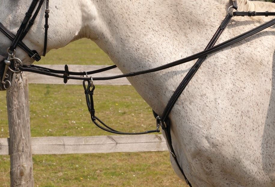Beautifully crafted and finished with a neat stitching detail in contrasting white. With detachable running martingale and fully adjustable straps. To Match 'Elegance Range' Bridles, See Codes: R114, R115, R116