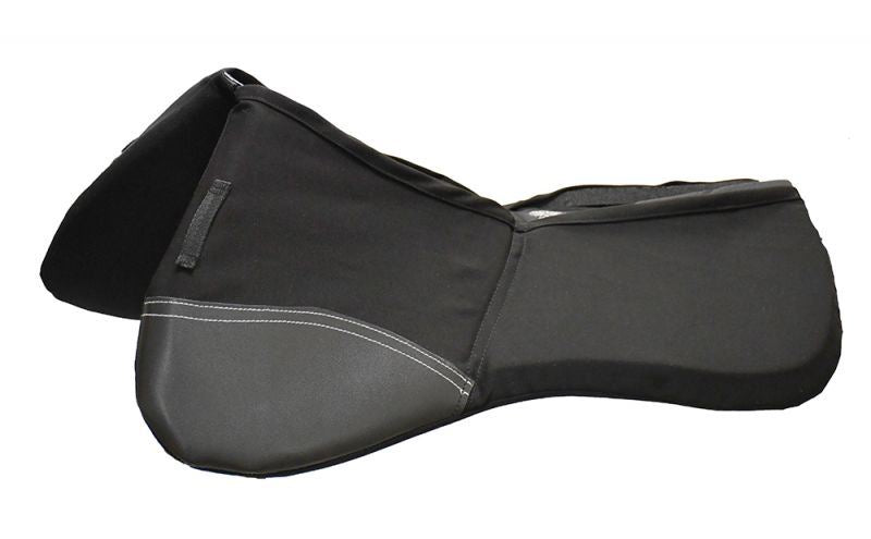 This Memory Foam Saddle Pad is approx 15mm in depth and a further 15mm can be added with the supplied pads. There is one pair of front additional pads and one pair of rear pads. A simple solution to adjusting or correcting saddle fit. The insert pads can be quickly adjusted and inserted into the pockets to transform this pad into a front riser, back riser or to correct any bi-lateral imbalance. The pads can be used to just add another layer of shock absorption for the horse. Featuring a durable girth protection area. 15mm Memory Foam on its' own Further 15mm Memory Foam Pads Choose where to add additional padding Soft,brushed jersey lining Durable hardwearing Polycotton outer