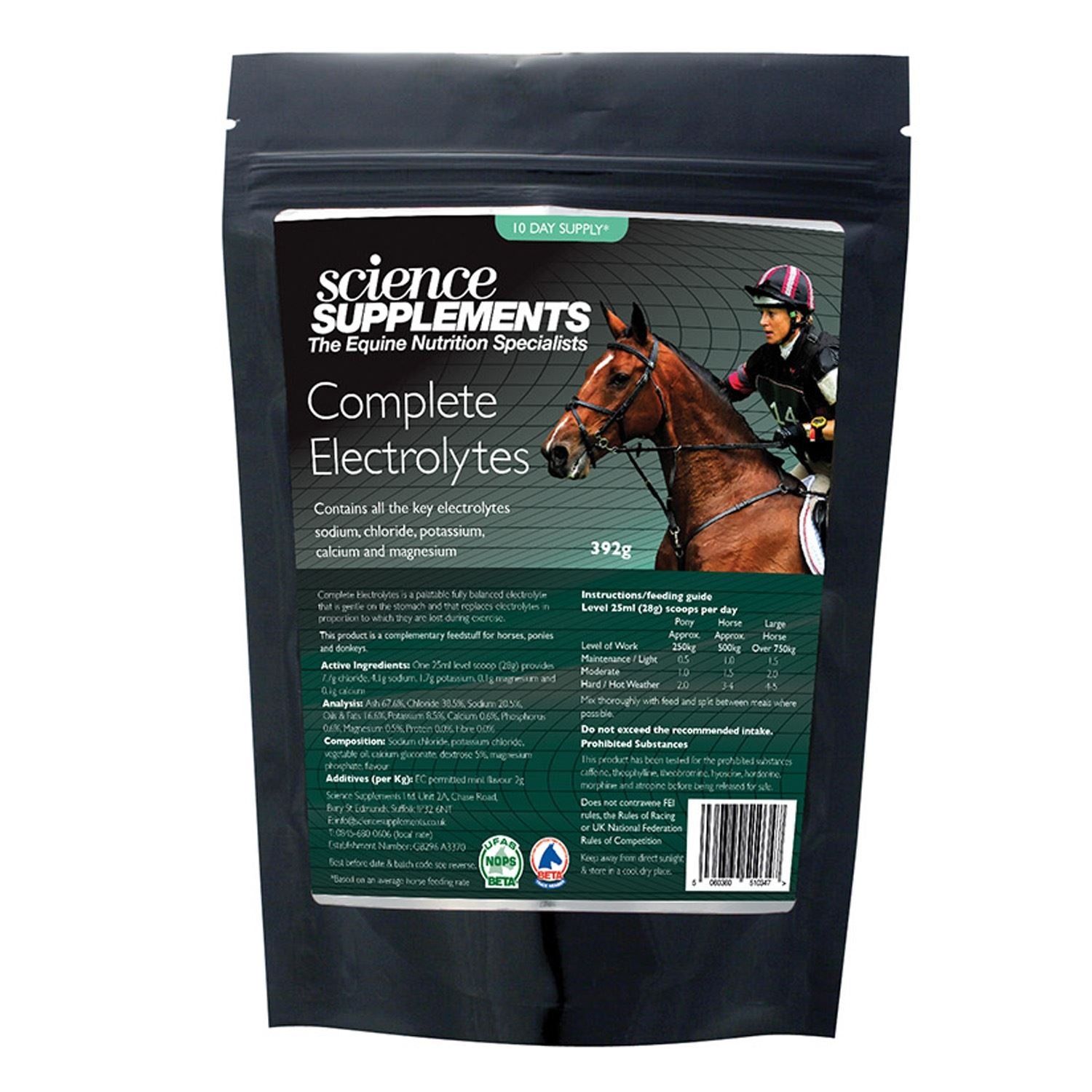 Shop now at Just Horse Riders for the Science Supplements Complete Electrolytes. This product is an exceptional electrolyte solution, specifically formulated for working horses. It is designed to help them perform at their peak by replenishing the electrolytes they lose during strenuous activity.
