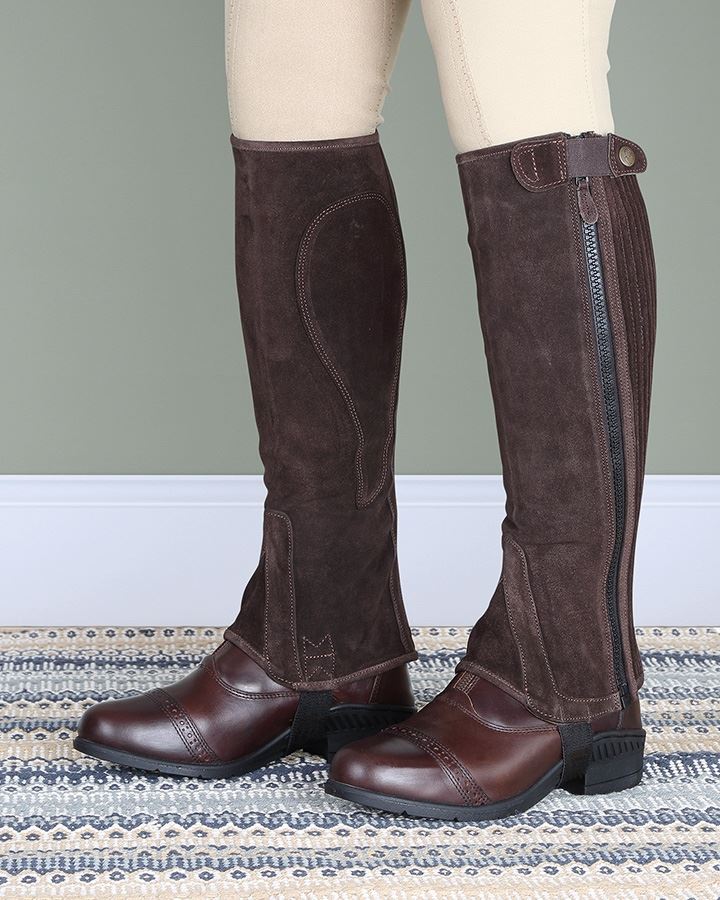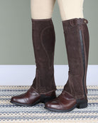 Presenting the supremely crafted Shires Moretta Suede Half Chaps for children from our exclusive range at Just Horse Riders. These Half Chaps boast of their remarkable durability and suppleness achieved through the high quality suede they're made from. They are meticulously shaped for a neat fit and reinforced especially on the inner calves. Going a step further to ensure convenience, they feature full-length zips, suede covered elastic inserts across the entire length, and reliable elastic foot stirrups. The tidy up is made easy with stretch zip tidy straps and for a fine finishing touch, they come with delicately bound edges. Make an undeniable style statement at your next ride, buy now!