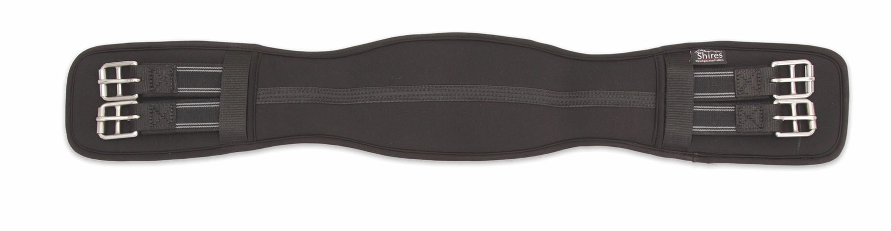 Experience the comfortable and protective Shires Neoprene Dressage Girth offered by Just Horse Riders. This intricately designed girth is composed of soft, padded neoprene that assists in reducing both friction and dampness buildup, offering thorough protection against any potential gall formation and rubbing. The double layer of elastic inserts at each end works to distribute the pressure evenly, ensuring your horse's ultimate comfort. Equipped with low bulk roller buckles and high-quality, rust-proof fittings, this Shires Girth stands up to the rigors of regular use. And when it's time to clean up, no worries! Thanks to its machine-washable material, upkeep is a breeze - just remember to keep the temperature at 30°C max and avoid tumble drying. Just Horse Riders encourages you to buy now and experience the superior comfort and protection that this product offers to your horse.