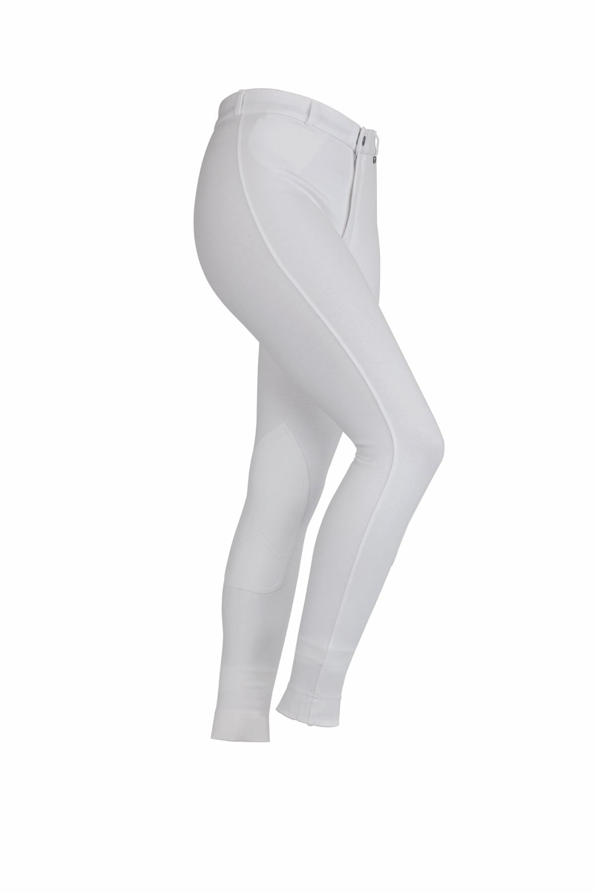 Great all round riding legwear, 4-way stretch knitted Creora® fabric gives these jodhpurs superior comfort and fit. Self-fabric contoured seat and knee patches, flat front, belt loops and inner hip pocket.