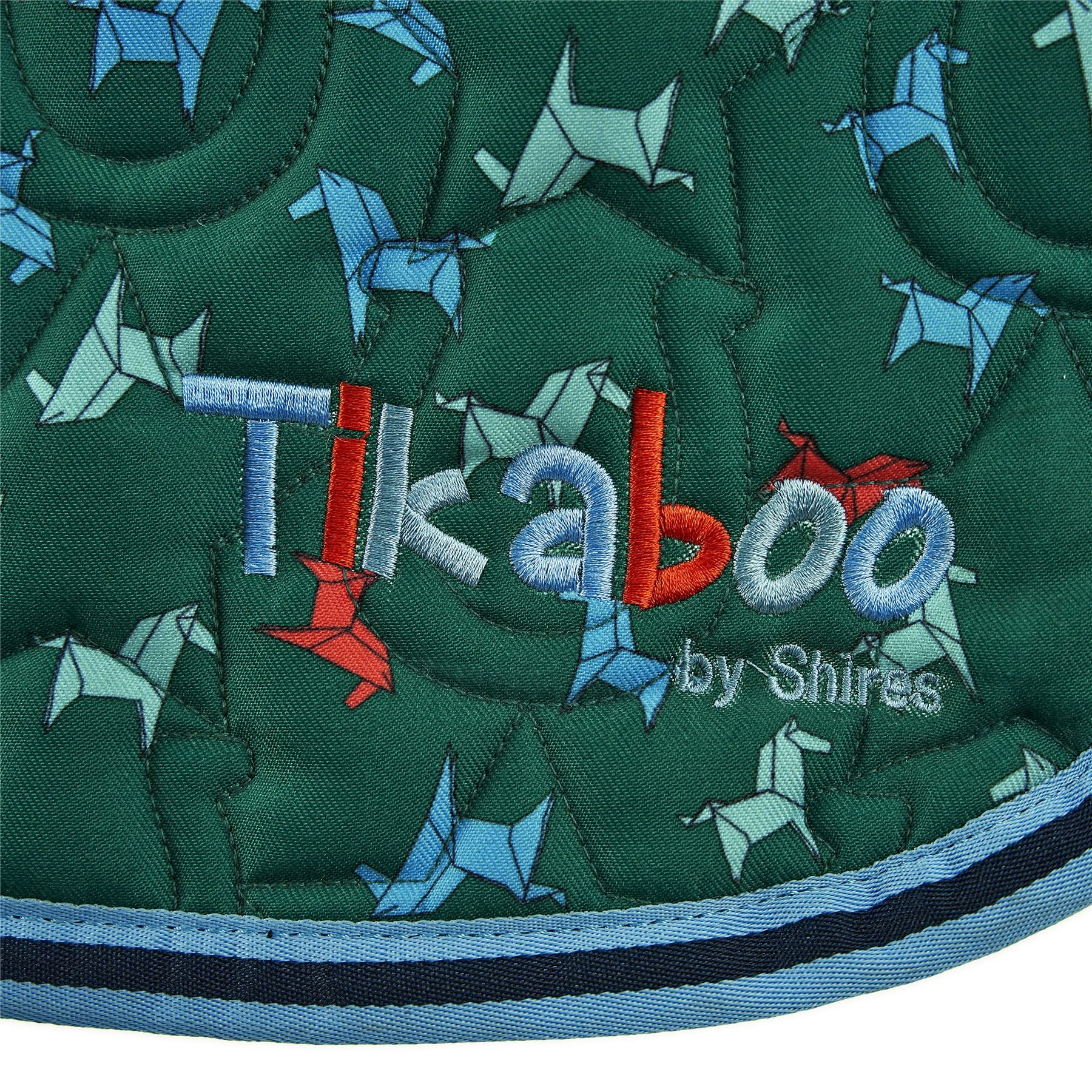The Tikaboo saddlecloth makes a fun addition to pony riding. A printed outer is quilted with a attractive horse shoe design and features Tikaboo embroidered emblems. ULTRA DRI ZONE lining instantly wicks sweat away from the skin to reduce the risk of rubbing and increase comfort for the pony. Further detail: touch close retaining straps and a contoured shape. Coordinates with the Tikaboo clothing range.