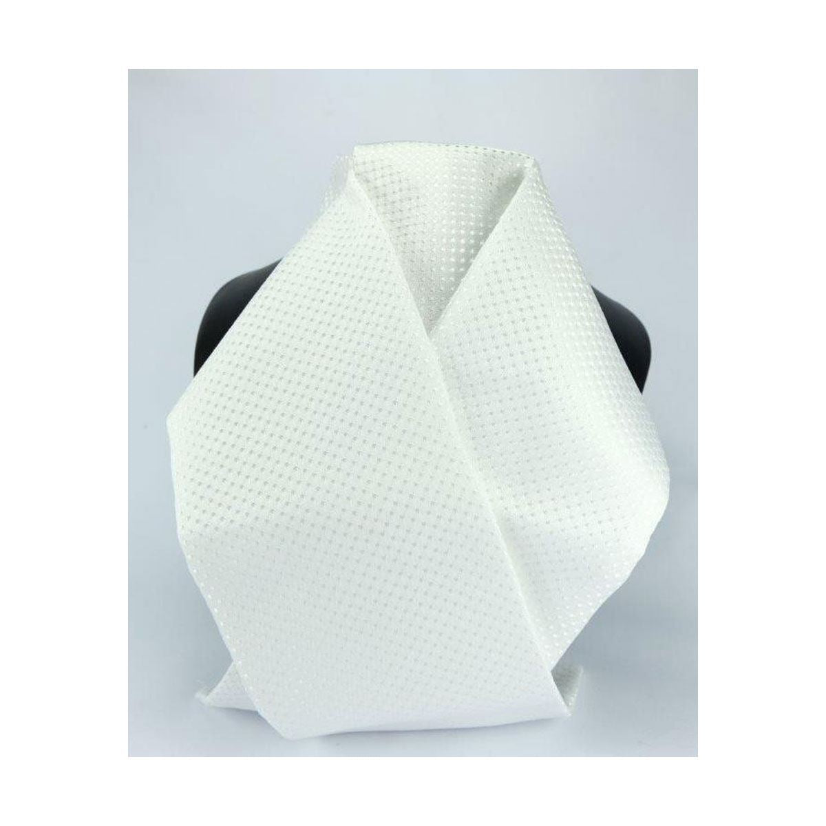 A ready tied, jacquard woven stock made from polyester. Designed with a hook and loop fastening for plenty of adjustment. Includes a buttonhole to attach to a shirt.