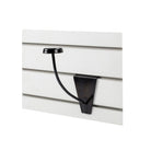 Smarten up any hat display with this easy to arrange stylish hat rack. Combine with the other slat-wall display items to update shops or show stands. Stubbyfine coated steel. Height 25cm, width 10.5cm and projection 21cm.
