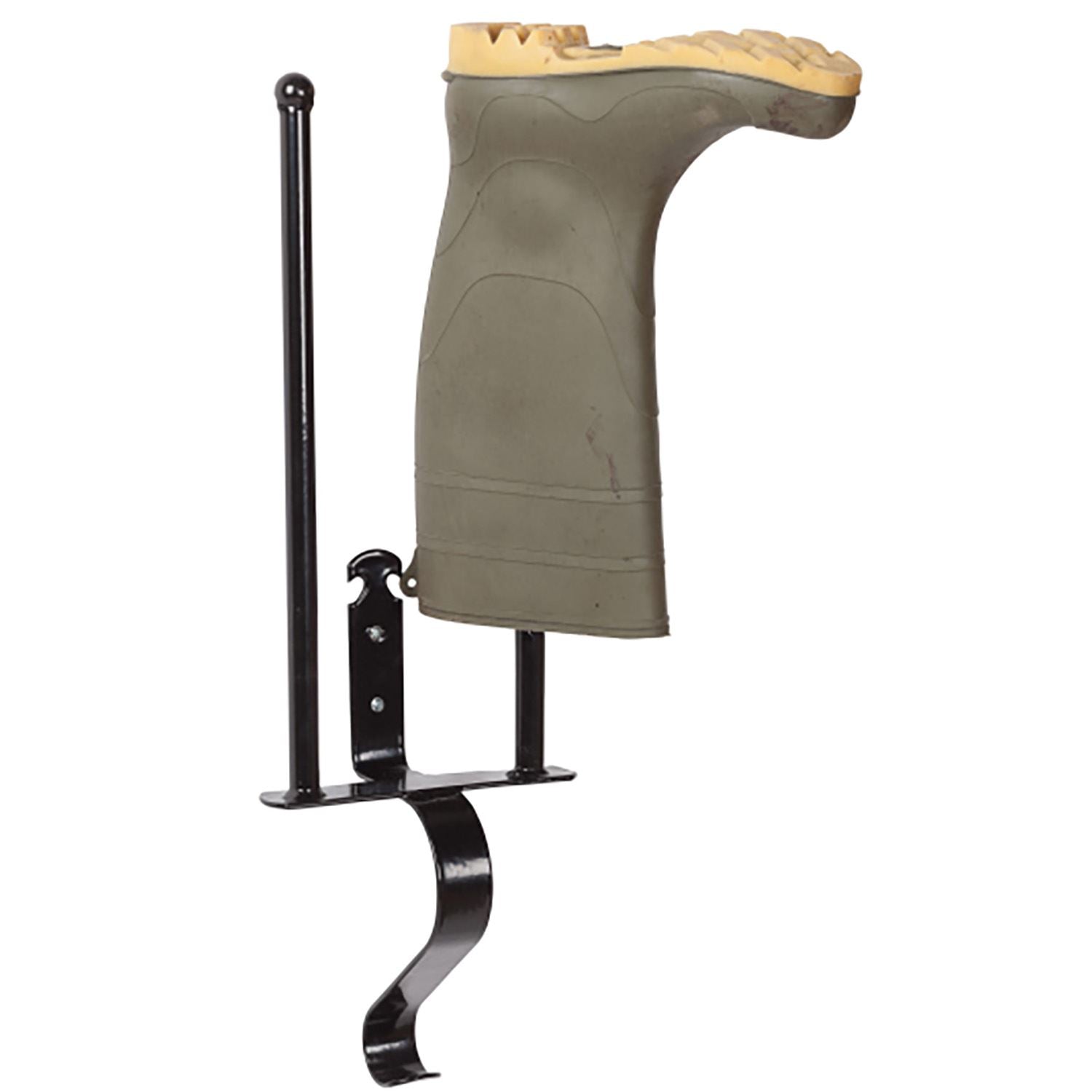 Stylish and easy to use with the metalwork evoking centuries old styling, this has a place almost anywhere. For use inside or out, multiple units can be fitted side by side or above and below, great for children. Equally suited to shop displays of long boots. Typical steel construction and finished in black stubbyfine coating. Height 69cm, width 24cm and projection 14cm.