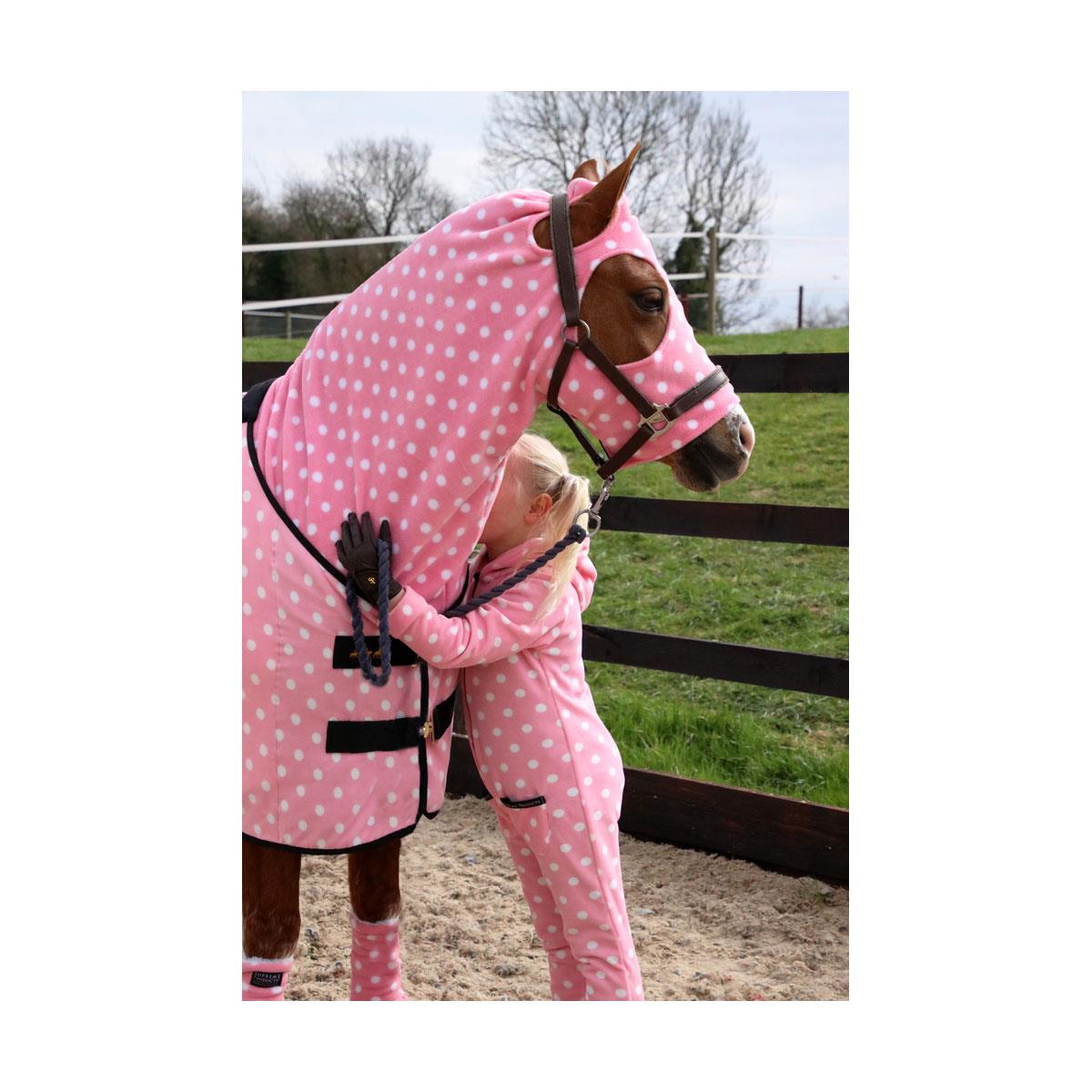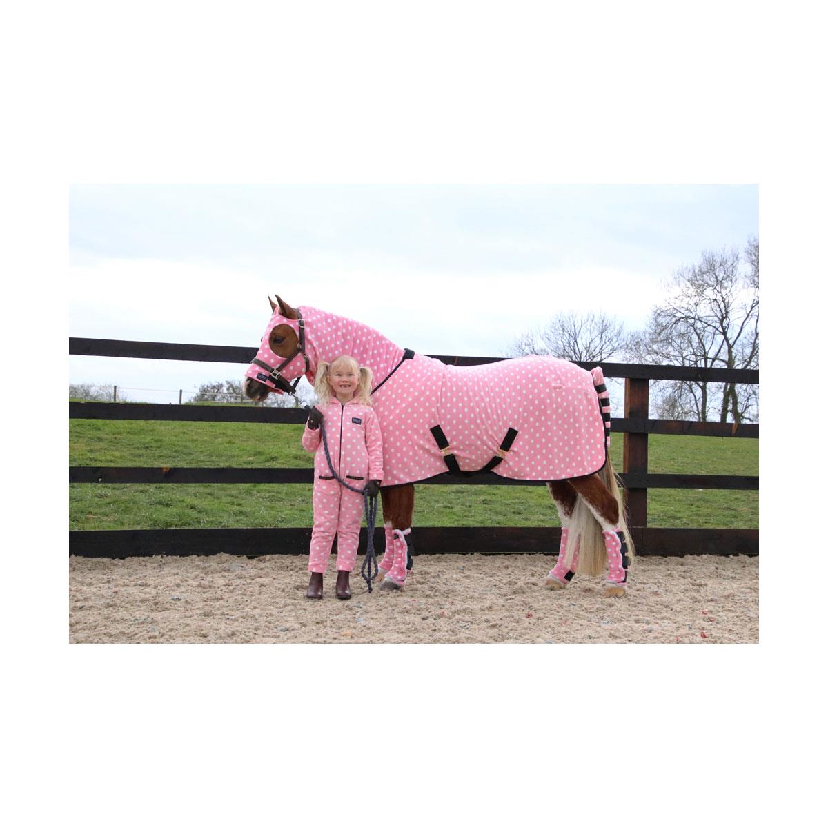 A must have item for any child�s wardrobe! Made with super soft high quality fleece, this stylish and practical eye catching polka dot onesie is sure to keep kids clean and cosy at competitions and nights away in the lorry. Featuring a hood for that extra snug feeling and two pockets perfect for keeping pony treats in, who isn�t going to want one! Team with the other items in the Supreme Products Dotty Fleece Collection for a look we are loving. Available in Rosette Red and Pretty Pink.