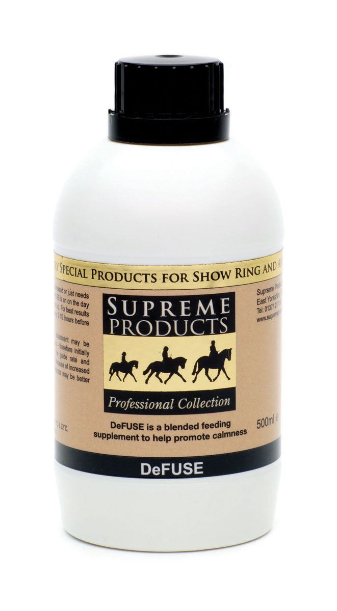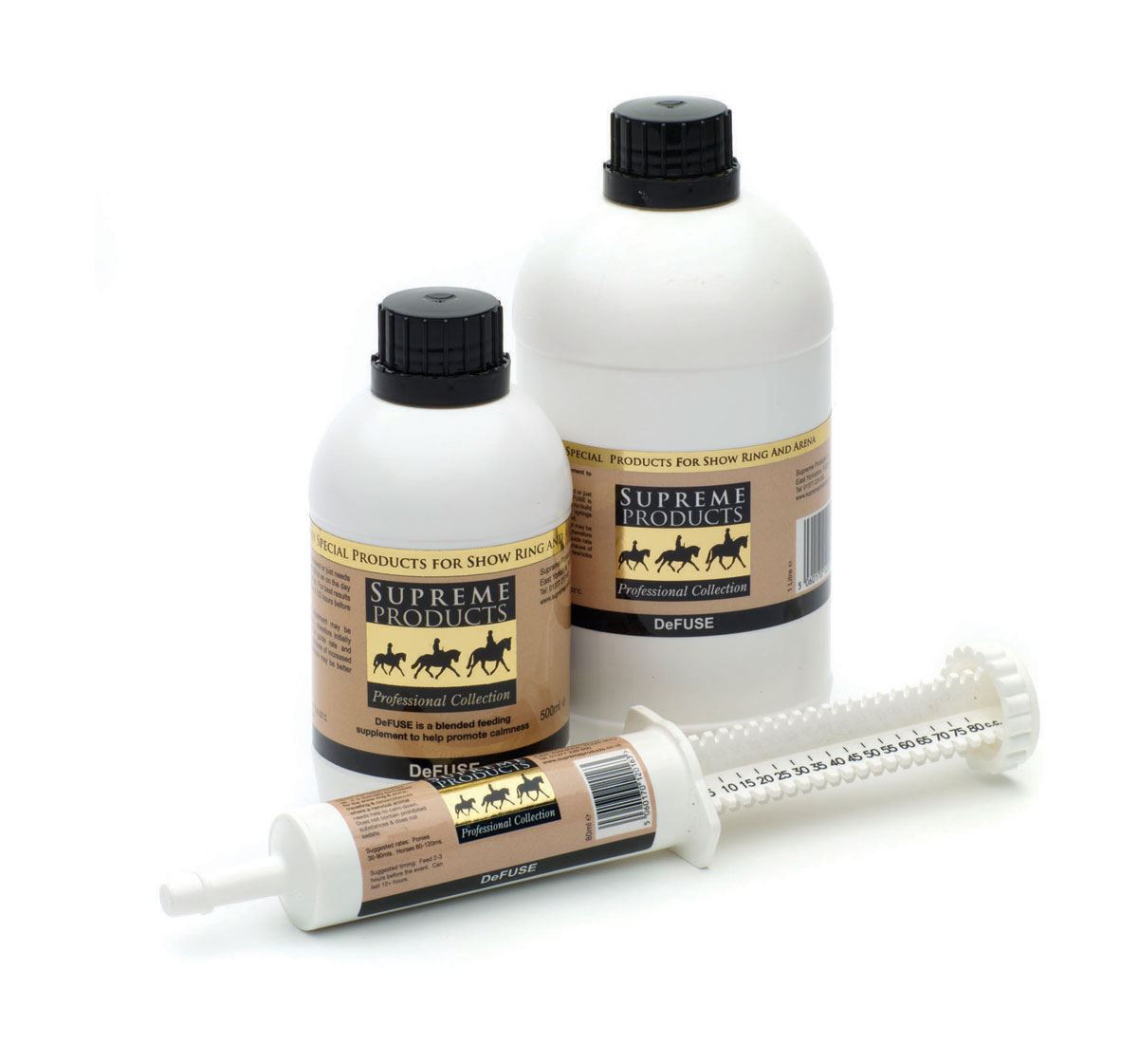 DeFUSE is a vitamin based supplement which helps calm nervous animals. No build up is normally needed and once the level for your particular horse or pony is established - and this is the principle factor and variable - you can feed DeFUSE when you feel that it is required
