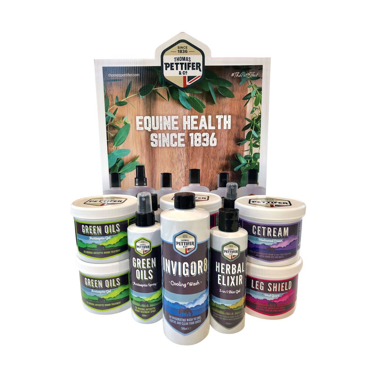 Contains 2 x Green Oils Gel 2 x Green Oils Spray 2 x Cetream 2 x Leg Shield 2 x Herbal Elixir 1 x Invigor8 1 x A3 Point of sale