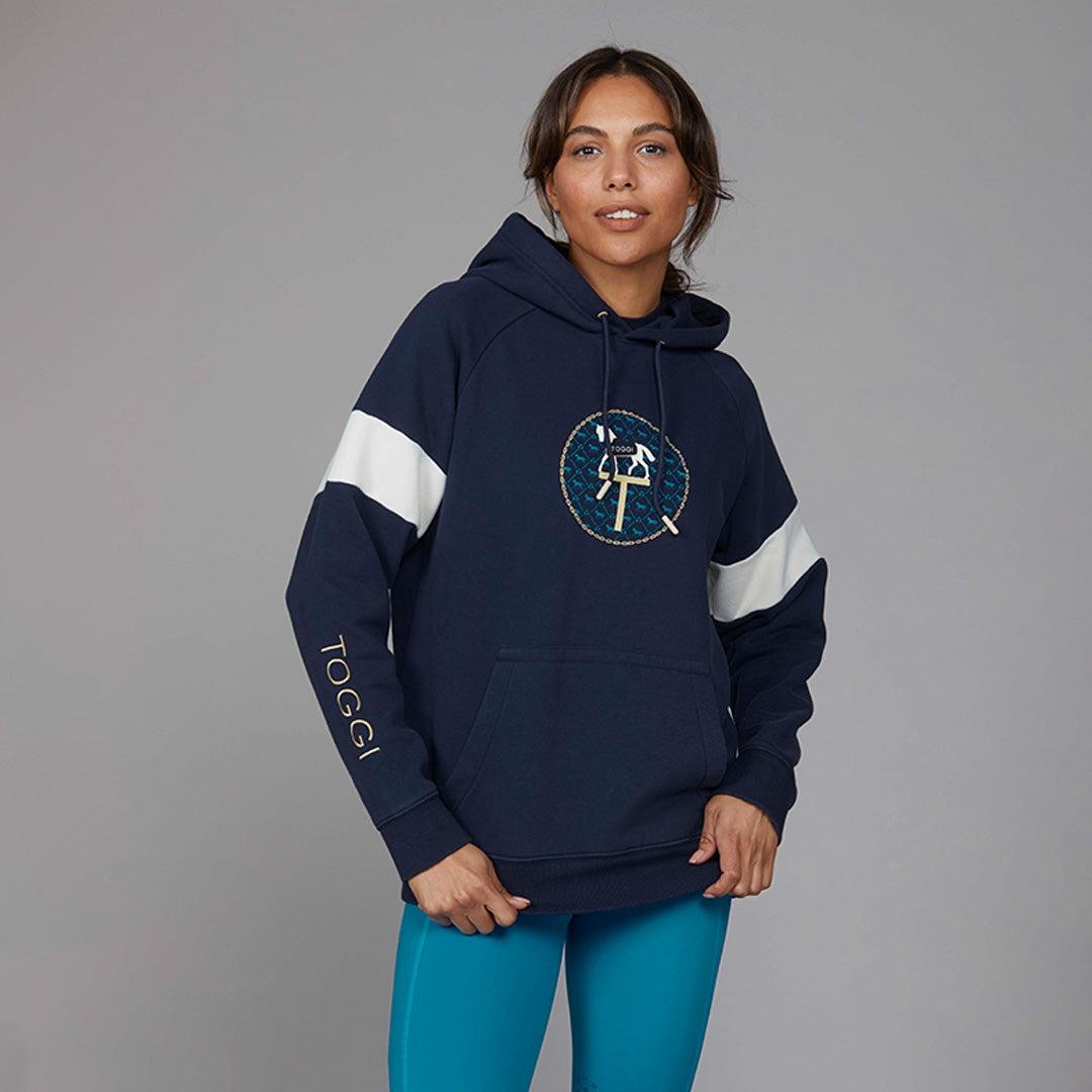 The Peyton Hoodie features a stunning equestrian inspired chest embellishment featuring print and embroidery. Silicone washed fabric with a brushed inner ensures a cosy feel. Contrast sleeve panels give a preppy look.