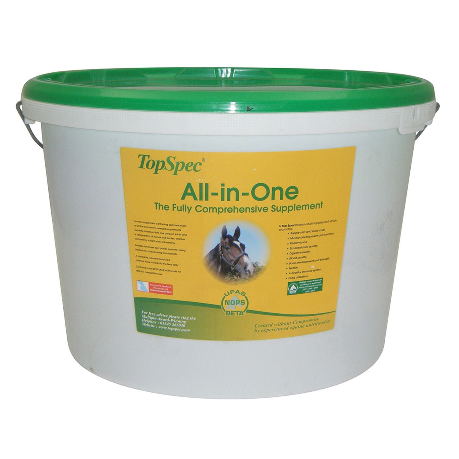 Shop now at Just Horse Riders for the Topspec All-In-One, an exceptional multi-supplement designed for optimum horse care. This product is expertly balanced with all the commonly needed supplements, making it an ideal choice for all horses and ponies, regardless of whether they're competing, in light work or breeding.