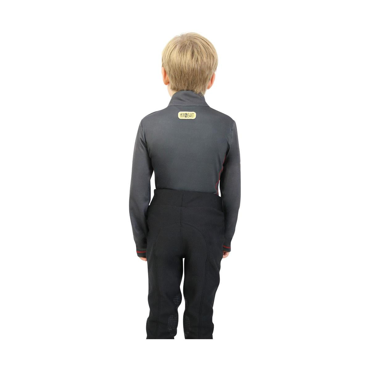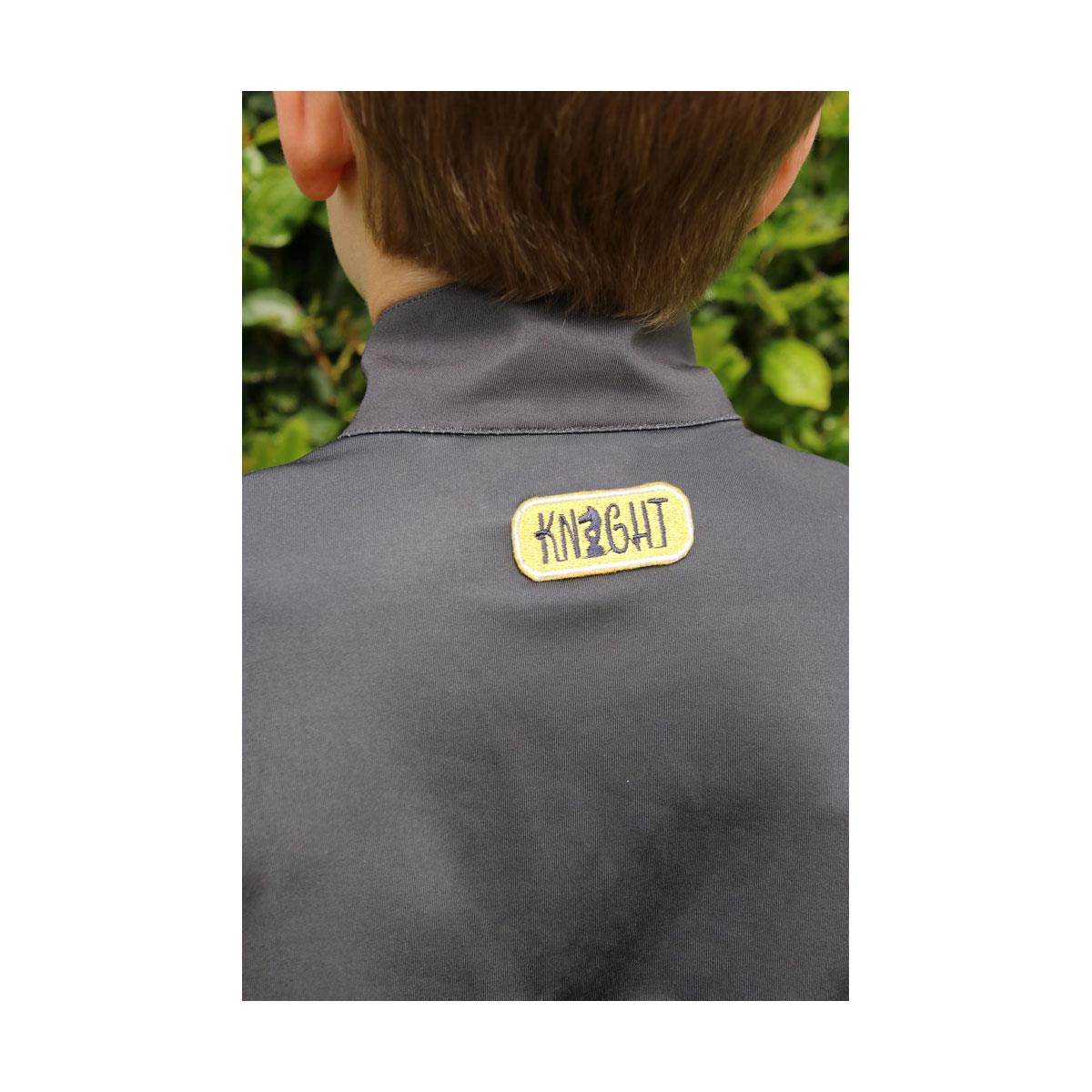 This charcoal grey base layer is made from a breathable four way stretch fabric, designed to keep your child feeling comfortable all day long. Red, blue and green coloured tractors adorn the sleeves for a fun and fashionable look! Featuring the Little Knight logo on the back of the neck, zip collar for easy dressing and contrasting red topstitching throughout. Matches the rest of the collection perfectly